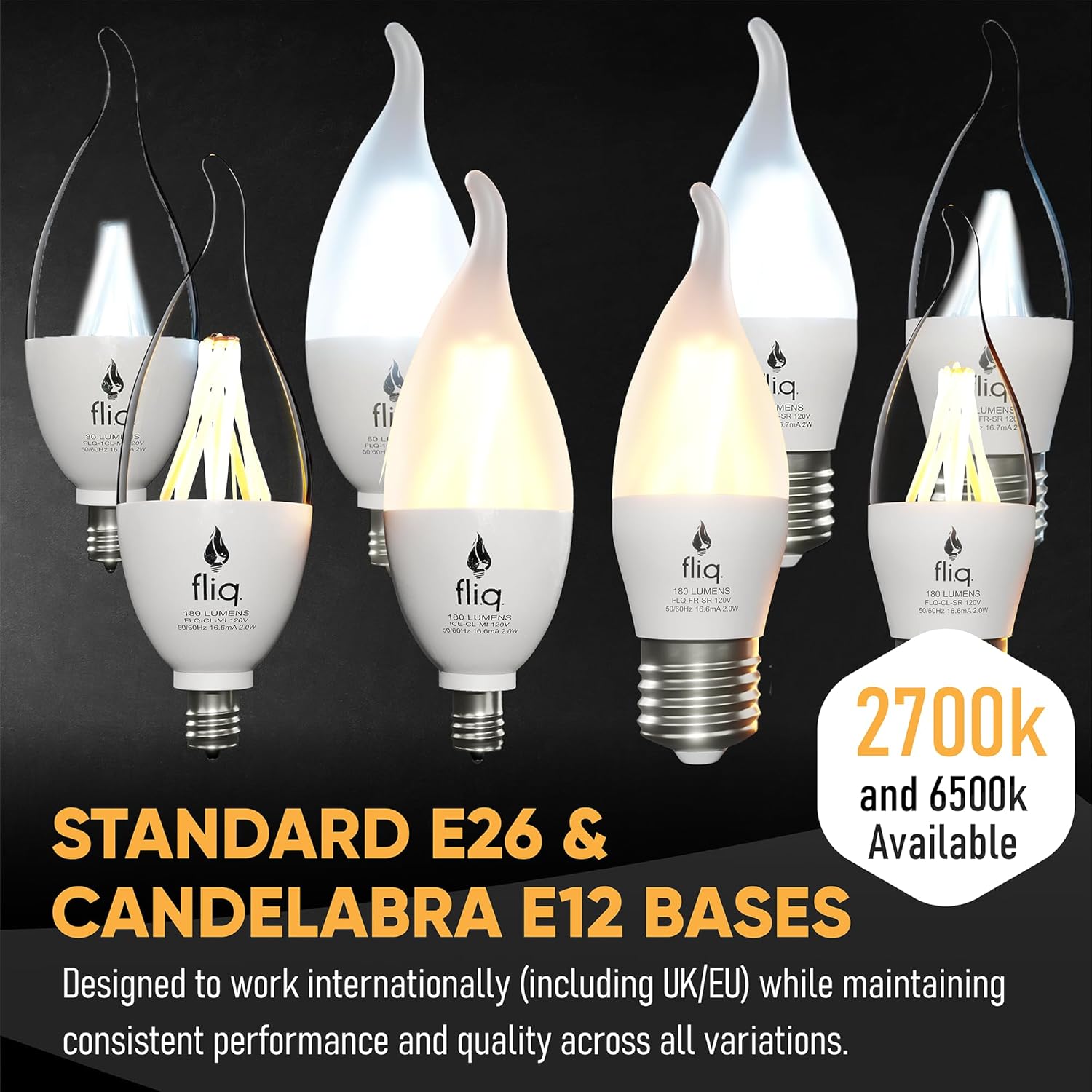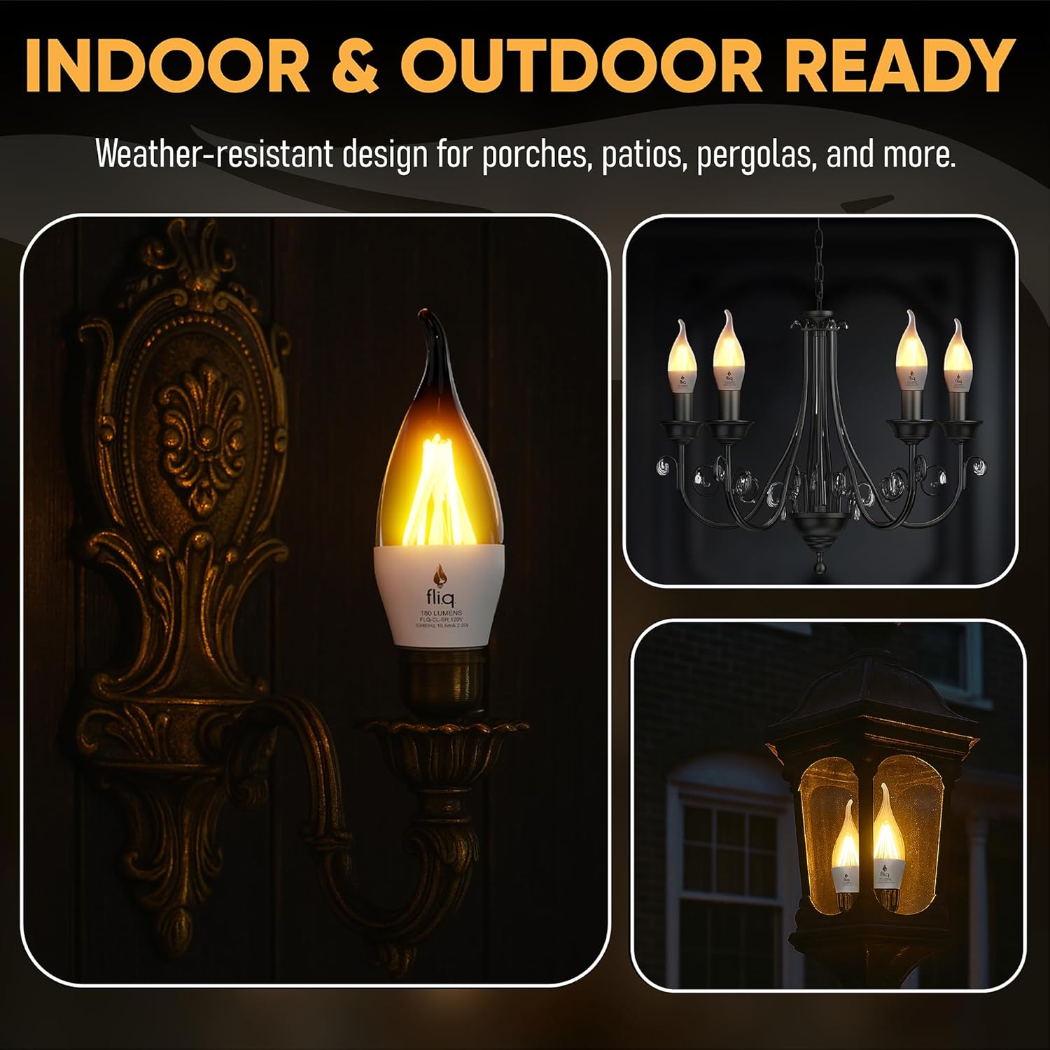 Fliq | LED Flame Light Bulb | 2 Pack | 2W | 4 Modes | Flickering Flame Bulb | 2023 Release | (Standard Clear E26)