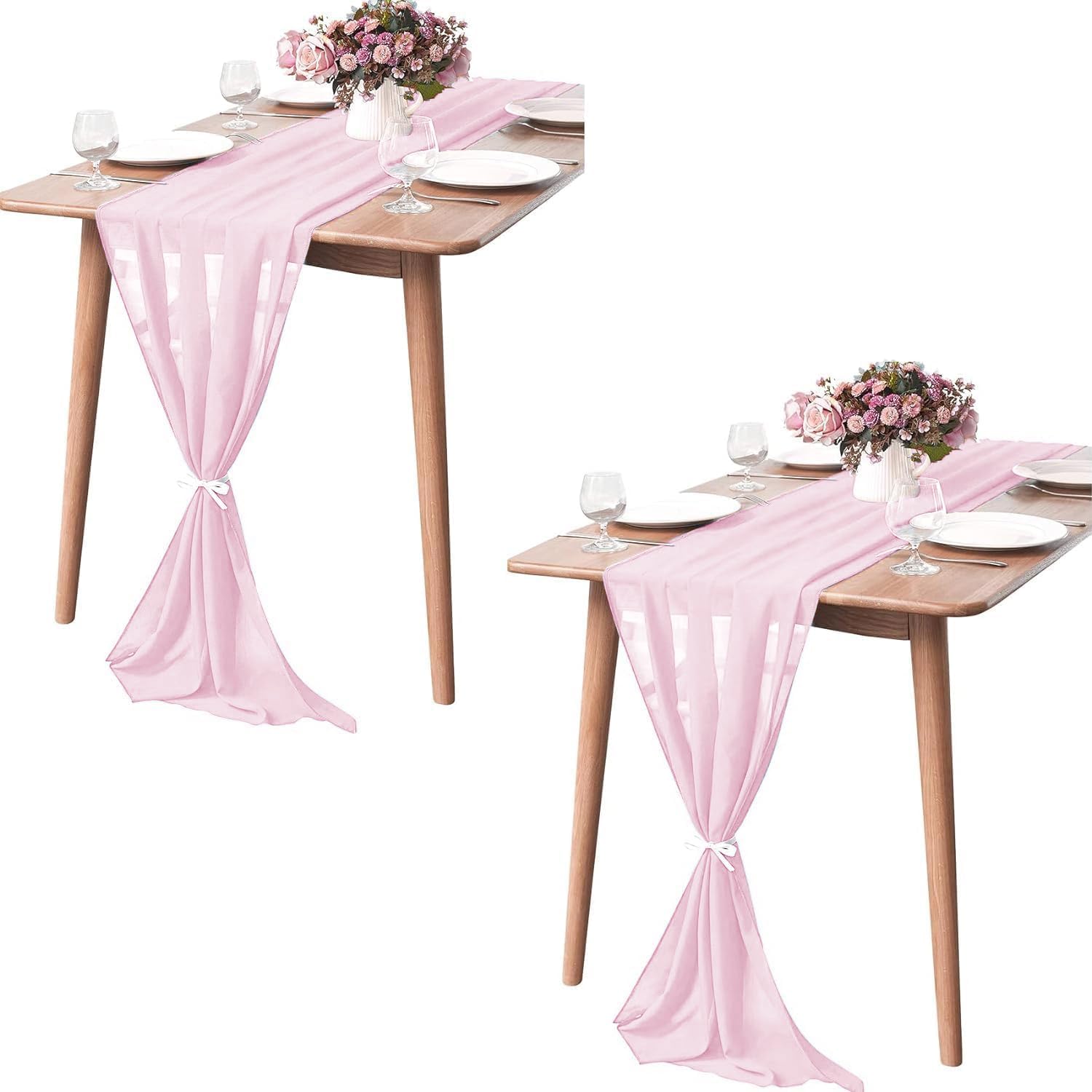 2 Pack 10Ft Blushing Pink Chiffon Table Runner Sheer 29x120 Inch for Romantic Wedding Decor Bridal & Baby Shower Birthday Rustic Party Decoration