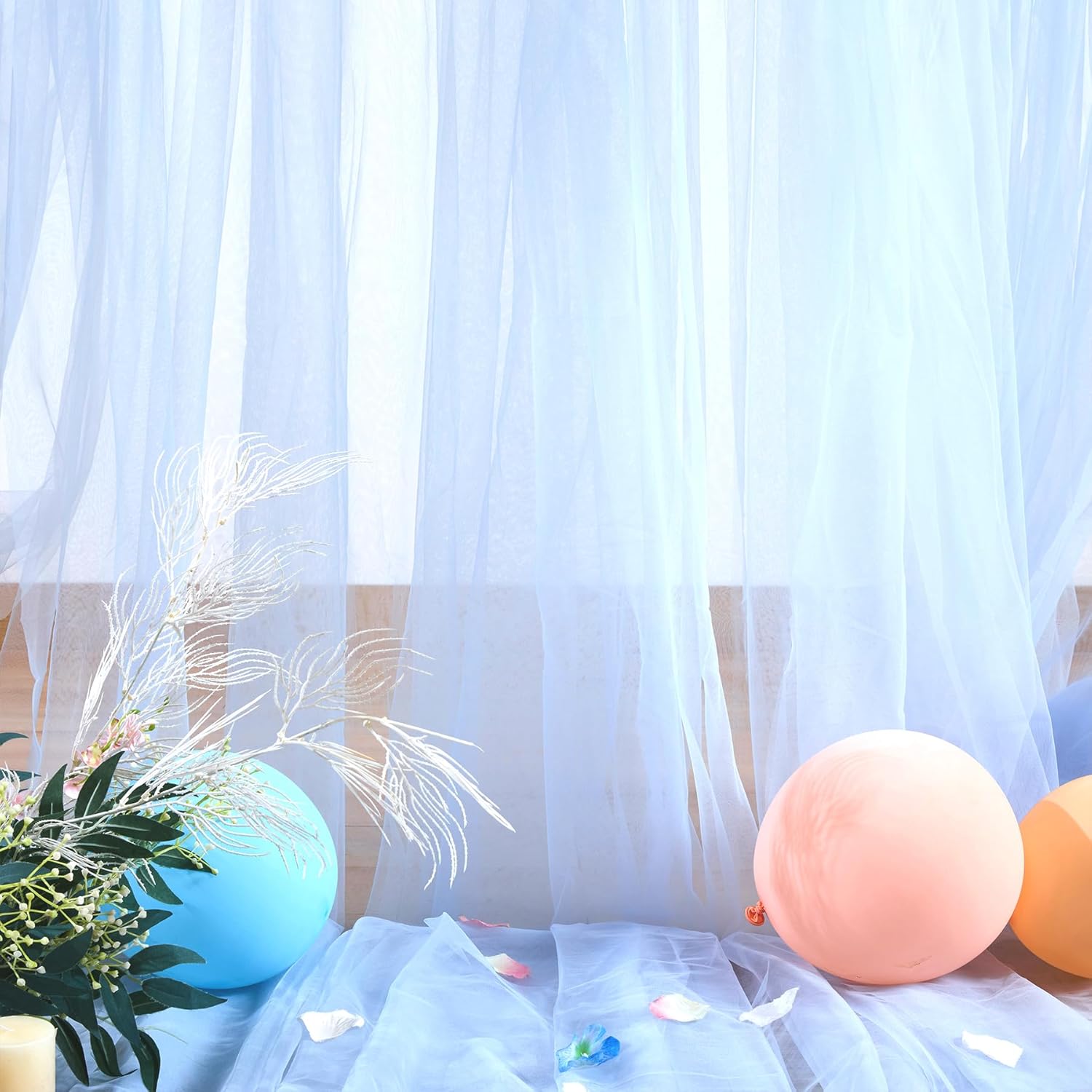 - Blue curtain for backdrop wide range of use : Blue sheer backdrop is perfect for parties,baby shower decorations for boy,wedding,birthday party for men or men,gender reveal,photo booth,candy buffets, dessert tables, backdrop for pictures,photography,graduation party,wedding arch draping fabric decorations,sheer window curtains,home decorations.