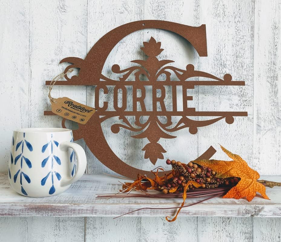 RealSteel Metal Split Letter Monogram โ Personalized Last Name Sign for Home & Outdoor Dรฉcor โ Custom Metal Wall Art โ Family Name Sign, Welcome Sign