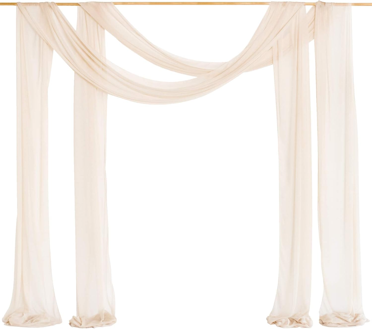 Ling's Moment Wedding Arch Draping Fabric 2 Panels 32Ft x 30" Wrinkle-Free Wedding Arch Drapes Chiffon Fabric Beige Curtain Wedding Ceremony Reception Backdrop Background Party Home Garden Decorations