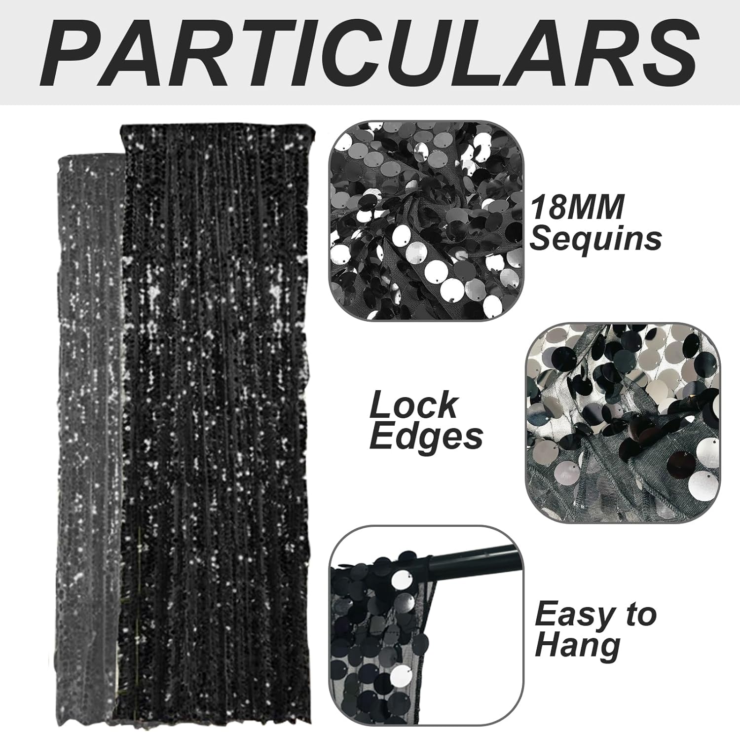 18MM Black Big Sequin Payatte Backdrop Curtains 4.5FTX9FT 2 Panels-Black Drapes Curtains for Thanksgiving Christmas Home Party Supplies