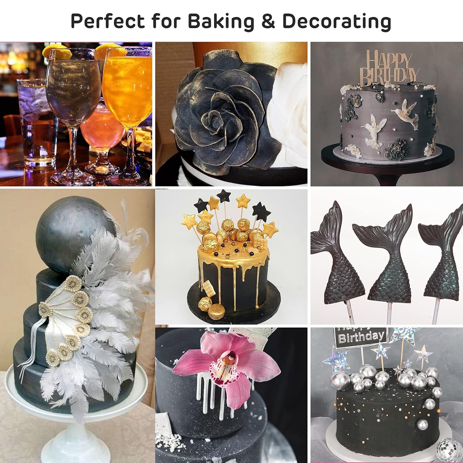 Nomeca Edible Luster Dust, 8 Grams Food Grade Cake Dust Metallic Shimmer Christmas Food Coloring Powder for Cake Decorating, Baking, Fondant, Gumpaste, Chocolate, Candy, Drinks, Cookies - Black