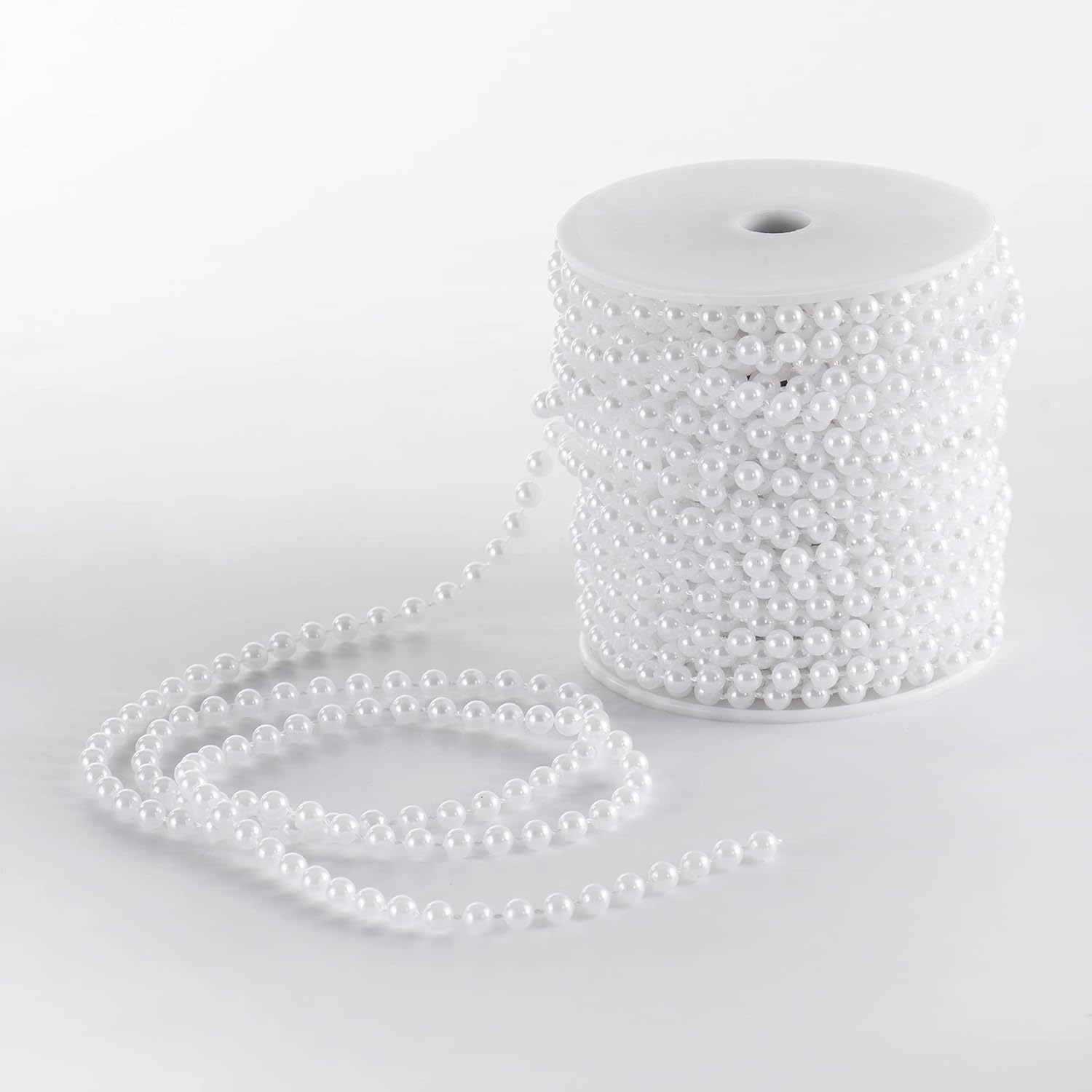 XINHUIDALSQ Craft String of Pearls 6 MM Faux Pearl Beaded, 66 Feet White Garland Bead String for Christmas Tree Decoration, Wedding Party Decoration (White, 6mm/20M)