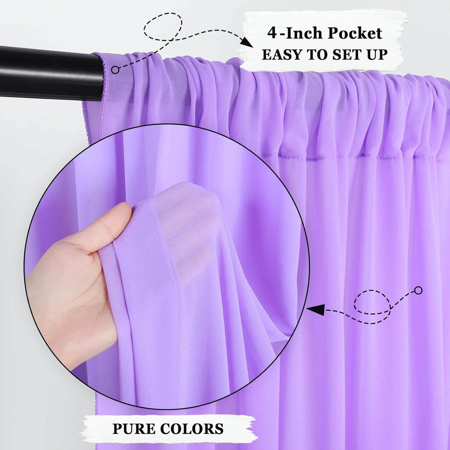 - ★ SHEER CHIFFON CURTAINS :Includes 2 Panels Width 29'' by 96'' Long(74x240cm) chiffon backdrop curtain Lavender Sheer Curtains For Wedding.