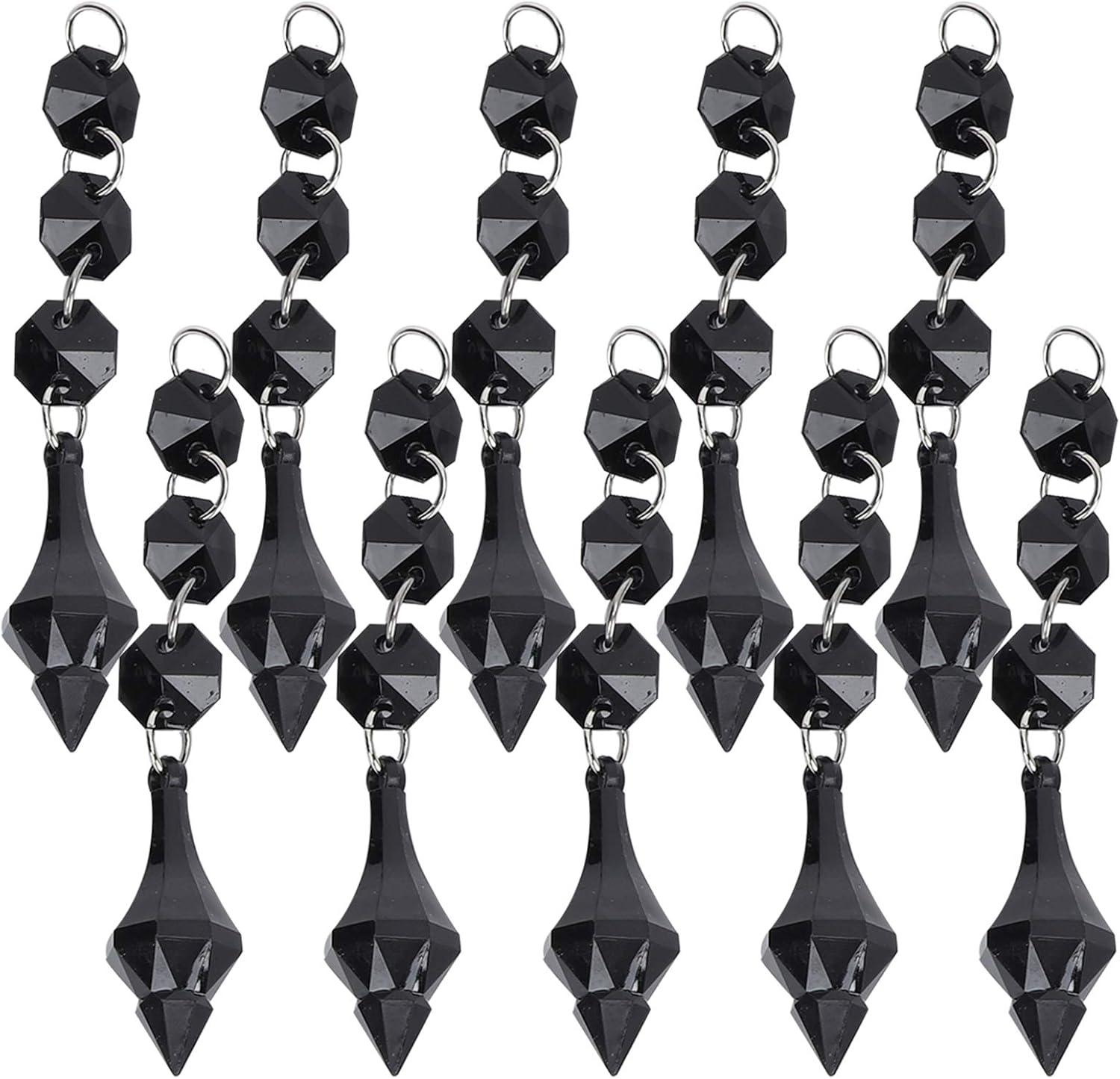 Buachois 10Pcs Clear Acrylic Crystal Ornament Beads Garland Chandelier Hanging Crystals for Wedding Party Celebration Christmas Tree Decor Black