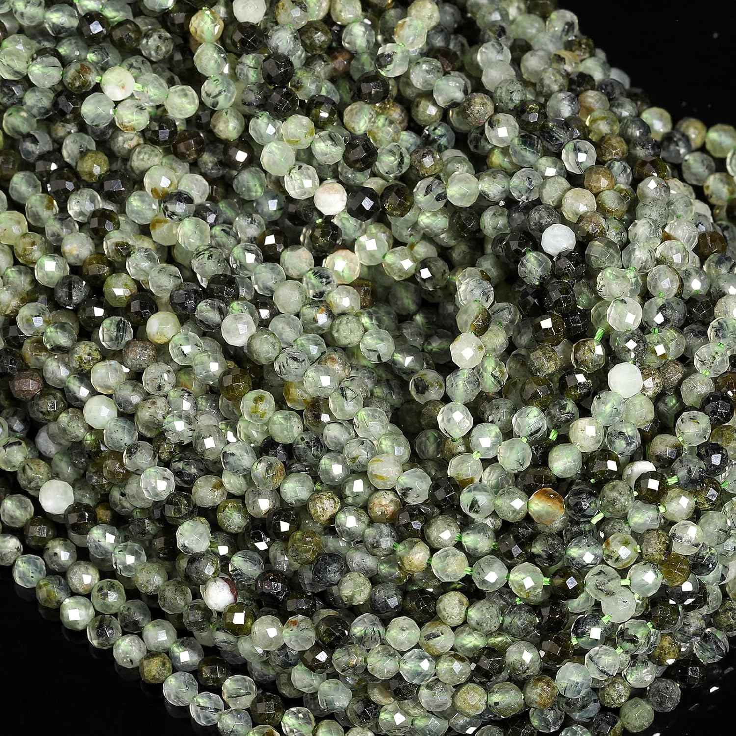Song Xi 90pcs 4mm Natural Prehnite Gemstone Beads Faceted Round Loose Stone Beads for Jewelry Making
