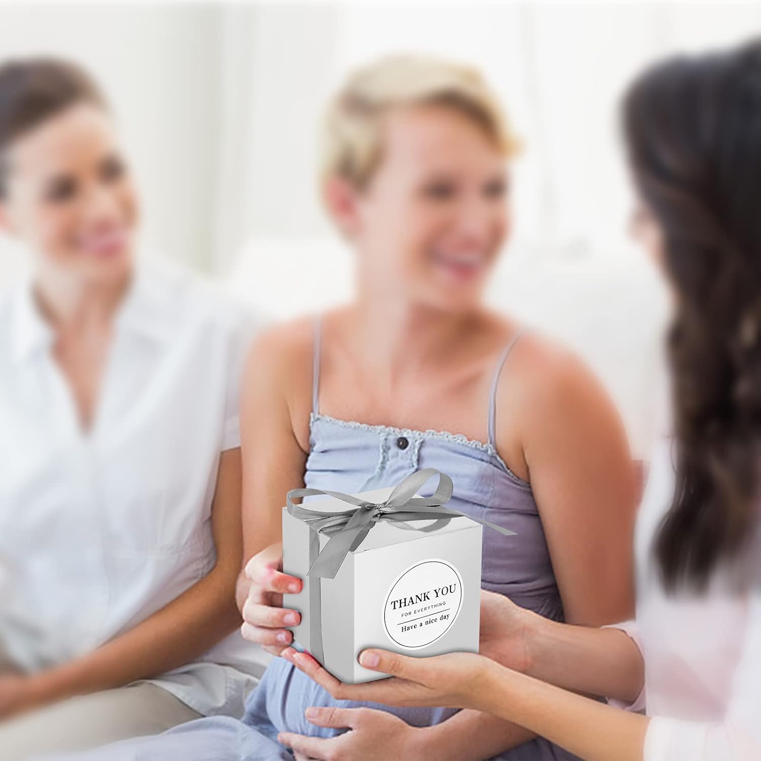 - What You'll Get: 60pcs Silver favor boxes,60pcs silver ribbons and 60pcs Thank you stickers. you can tie a bow knot on top, which will be more elegant and romantic for party.
