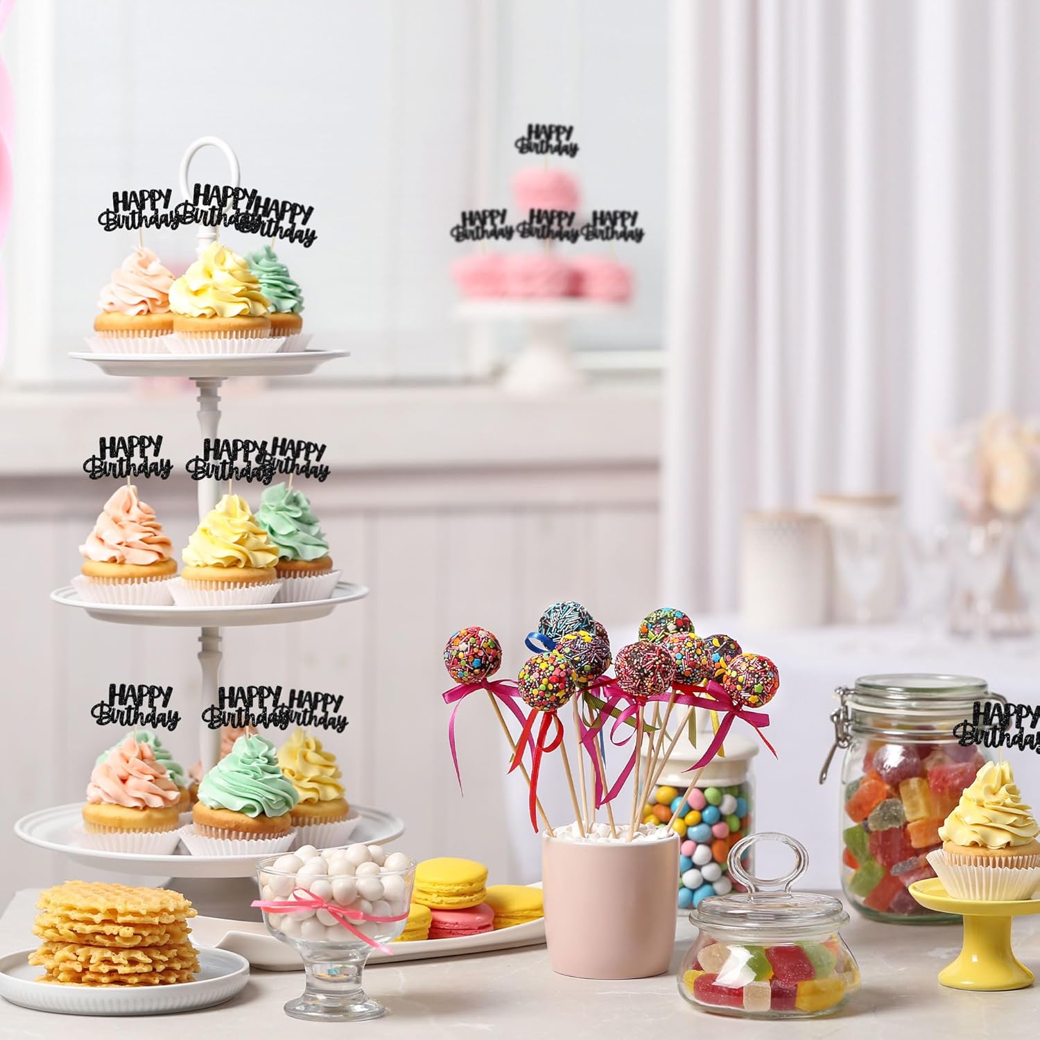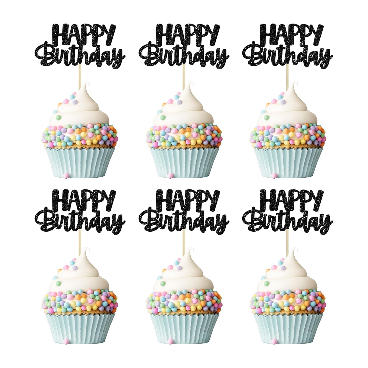 - 🌟 Premium Material: These glitter happy birthday cupcake Toppers are made of high quality paper and food-grade toothpick, very safe to put them on cakes, cupcakes, ice cream, fruits, pie, dessert, cheese or any dish and food appetizer you want to decorate.