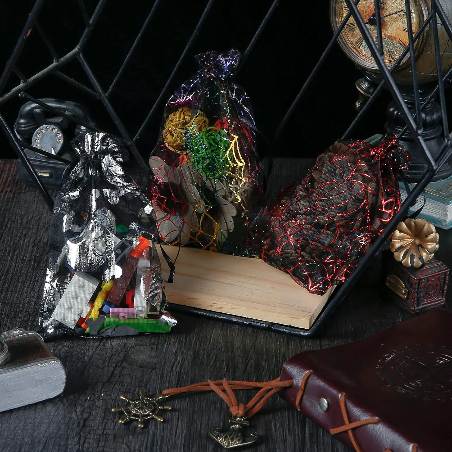 WenTao Halloween Organza Bags, Black Spider Web Favor Gift Bags with Drawstring, 4 x 6 inches Jewelry Gift Bags for Christmas, Halloween, Festival, Pouches Candy Mesh Pouches