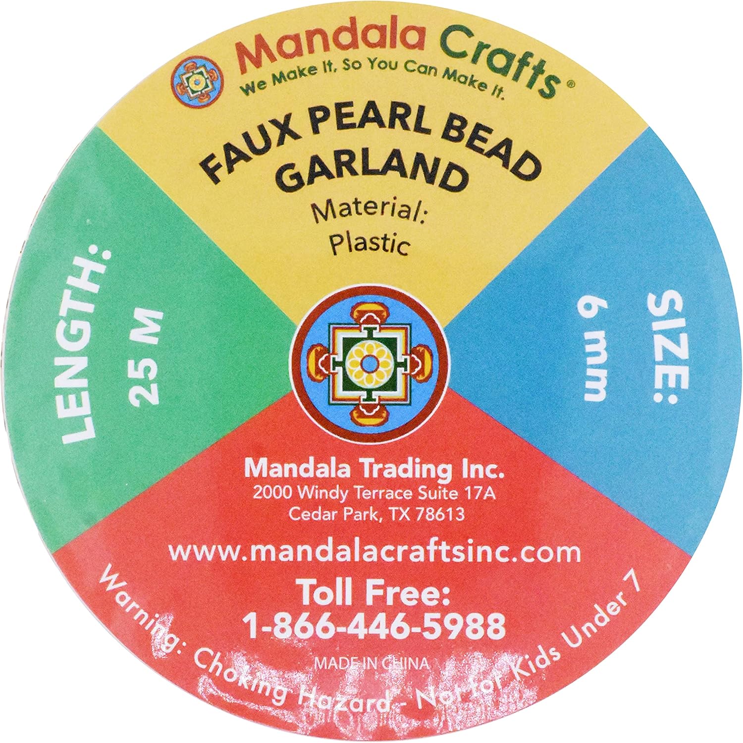 Mandala Crafts 6mm Faux Metallic Gold Pearl Beads Roll - 27 Yards Strand of Fake Pearls Chain Garlands Spool String for Christmas Tree, Wedding, Party, Vases, DIY Decoration