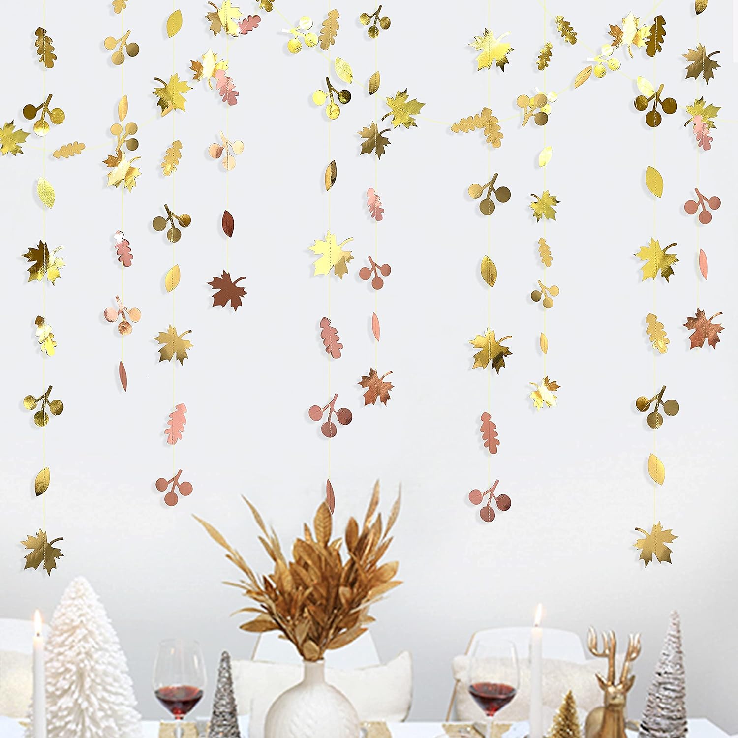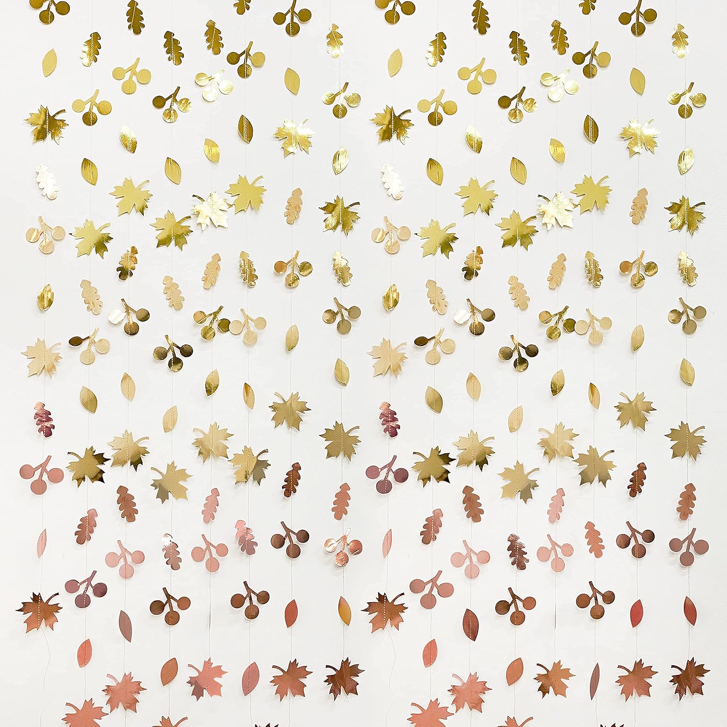- 🍁USING OCCASION-Our maple leaves garlands are perfect for decorating any parties.such as fall wedding,birthday,bachelorette,engagement,bridal shower,baby shower,hen party,tea party,anniversary,fall autumn party,harvest party,gold party,rose gold party,champagne gold party,thanksgiving party decorations supplies.Also ideal for windows/nursery/showcase decor.