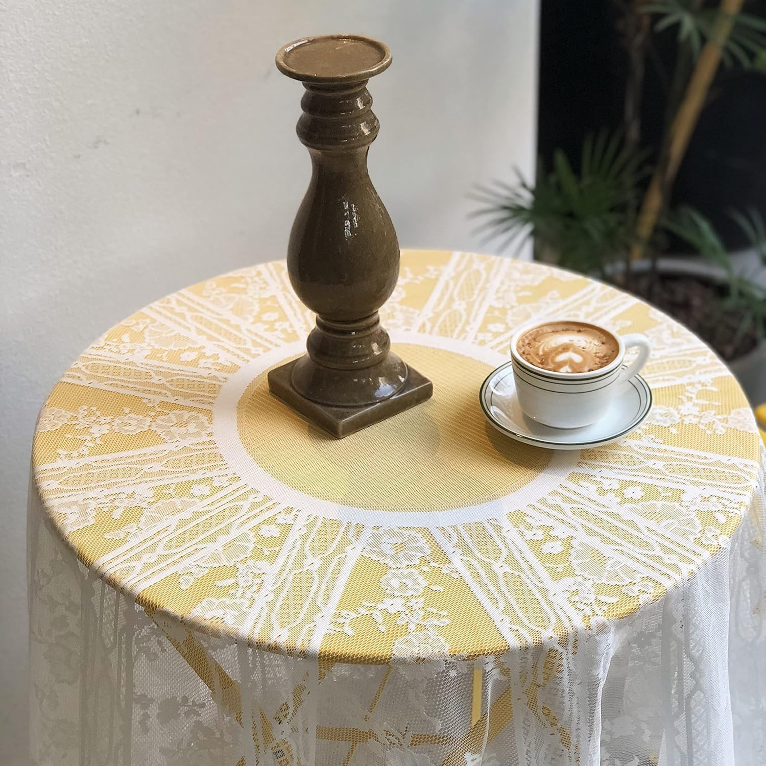 Gorgeous Round Lace Tablecloth,Vintage Floral Embroidered Table Cloths, Chic Round Table Cover for Wedding Banquet HolidayDinner Tables 60INCH (White)