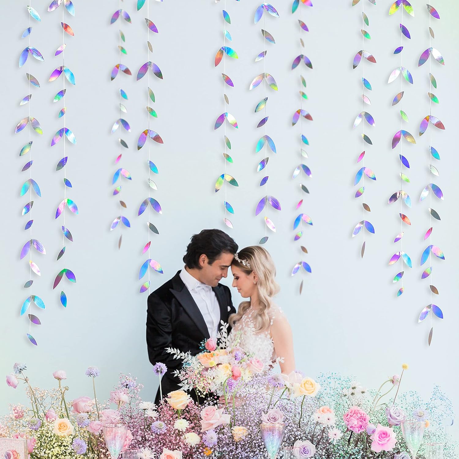 - UNIQUE DESIGN- Our iridescent leaves garlands are made of metallic holographic paper.different light will reflect different colors.Bling bling shining make the atmosphere of your decor more perfect.