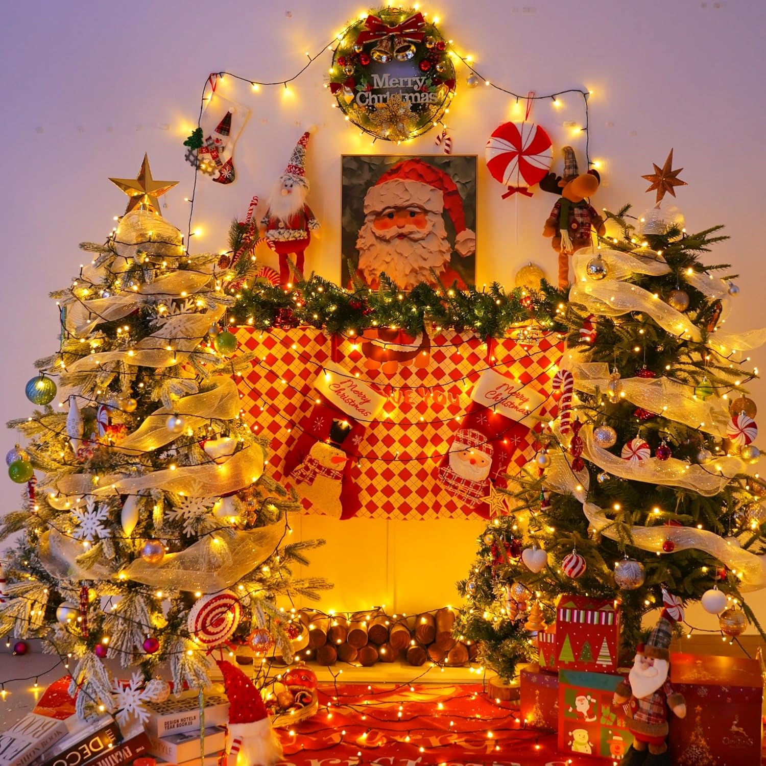 YEGUO 500 LED 165ft Christmas Lights Outdoor Waterproof, Warm White String Lights Indoor, 8 Modes Green Wire Twinkle Xmas Tree Lights Plug in with Memory Timer