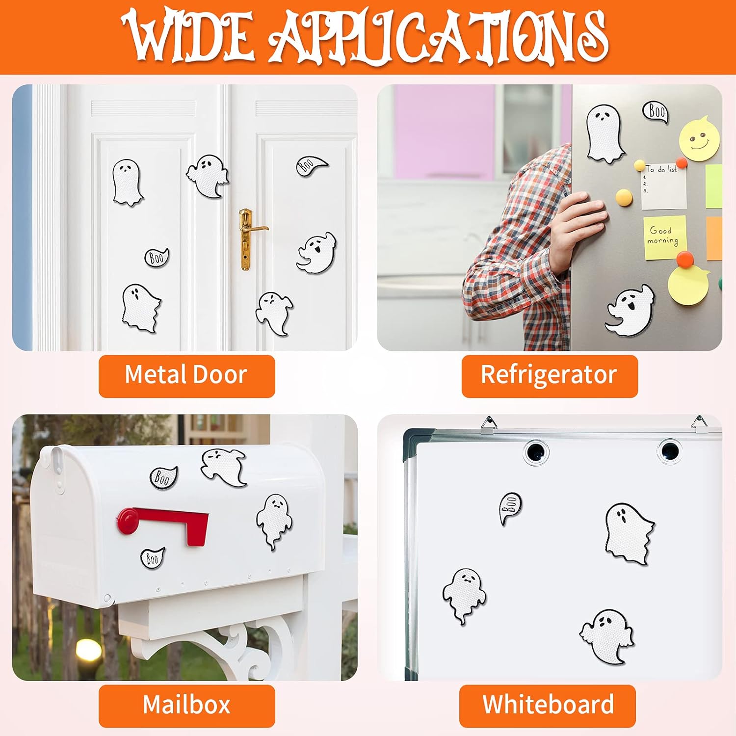 - Quantity information: you will receive 18 pieces of Halloween car magnets, including 12 pieces ghost shape magnet stickers in 6 designs and 6 pieces boo refrigerator magnets, which are enough to meet your daily or festival decoration demands, also enough to meet your replacements needs