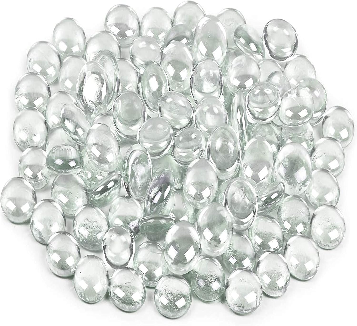 Galashield Flat Glass Marbles for Vases Clear Glass Gems Beads Pebbles Vase Filler (1 LB, Approx. 105 PCS)