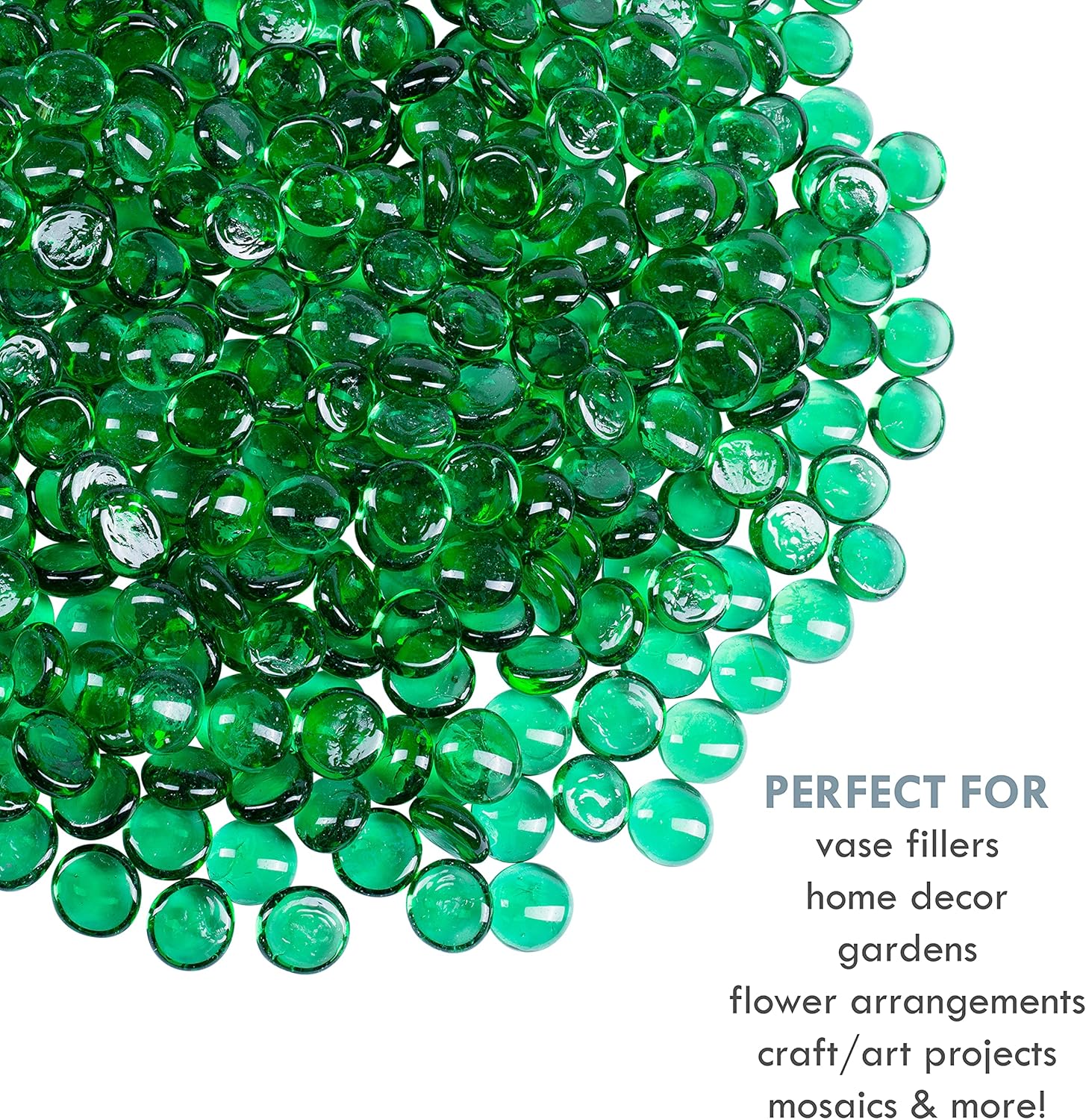Galashield Flat Glass Marbles for Vases Green Glass Gems Beads Pebbles Vase Filler (5 LBS, Approx. 540 PCS)
