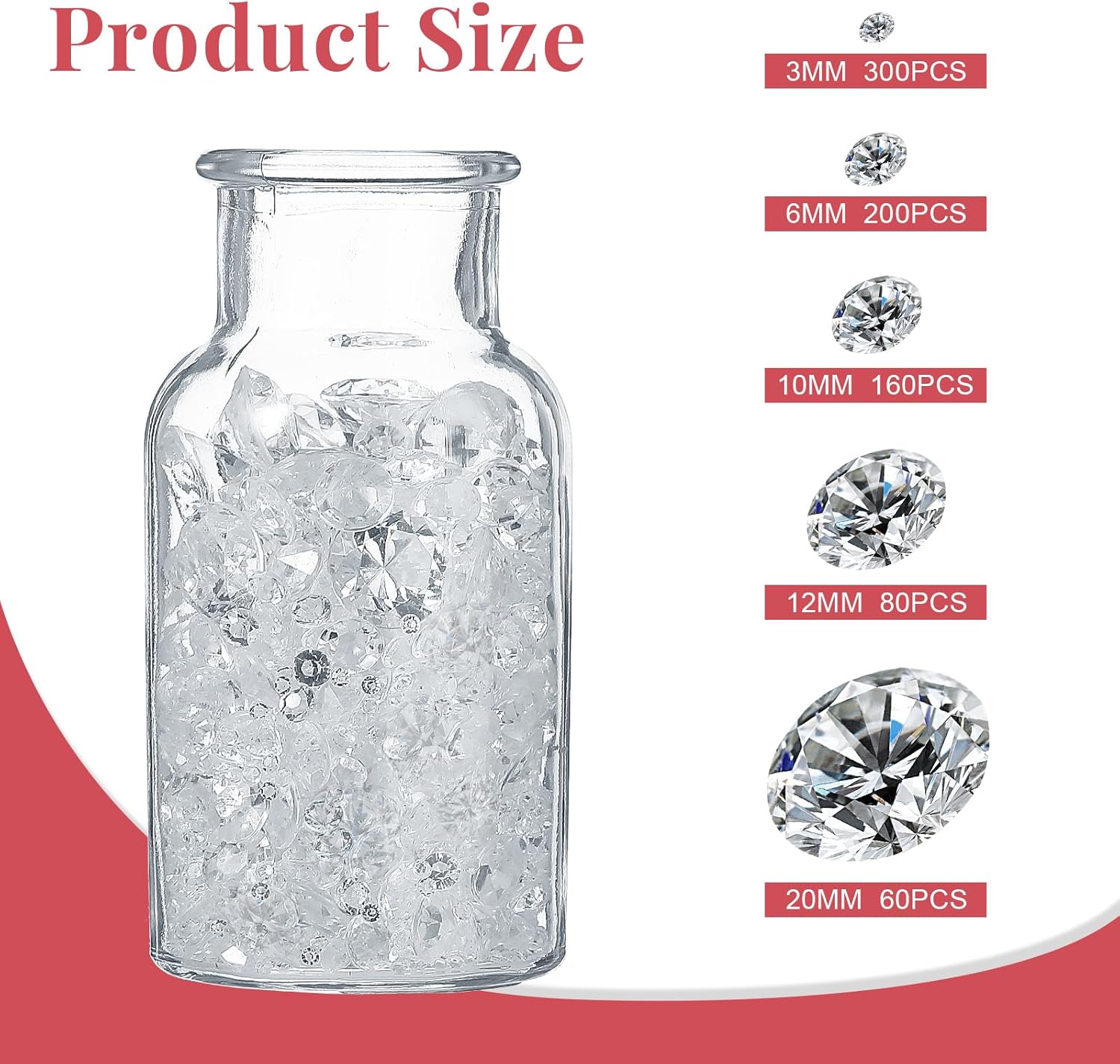 Hicarer 800 Pieces Diamond Decorations Acrylic Diamond Table Scatter Crystals for Table for Vase Fillers Party Decorations (20, 12, 10, 6, 3mm,Clear)