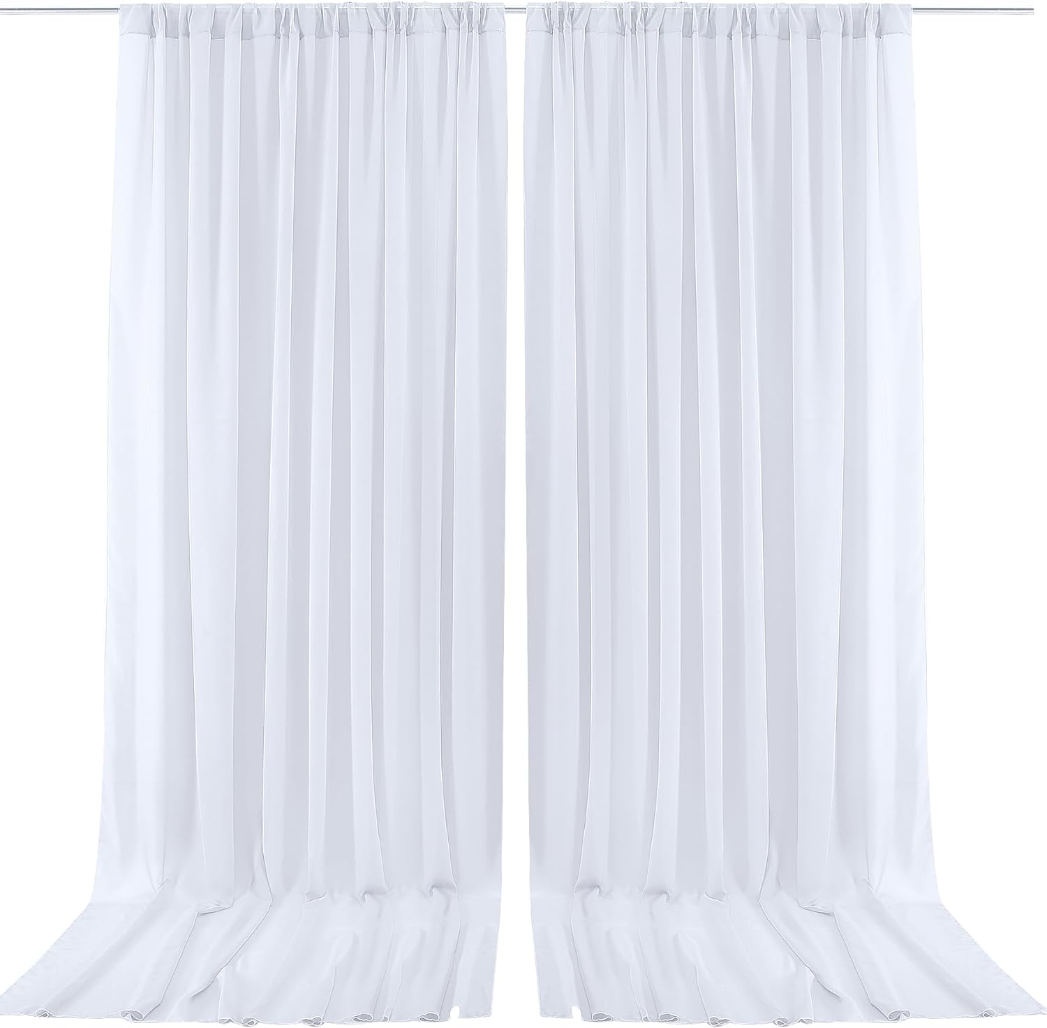 - 2 Panels Sheer Backdrop Drapes: Come with 2 panels White chiffon backdrop curtains,each white chiffon curtains panel size is 5ft width and 10ft height. Combined, entire white backdrop curtains is 10*10ft. Please note: Not including the background stand