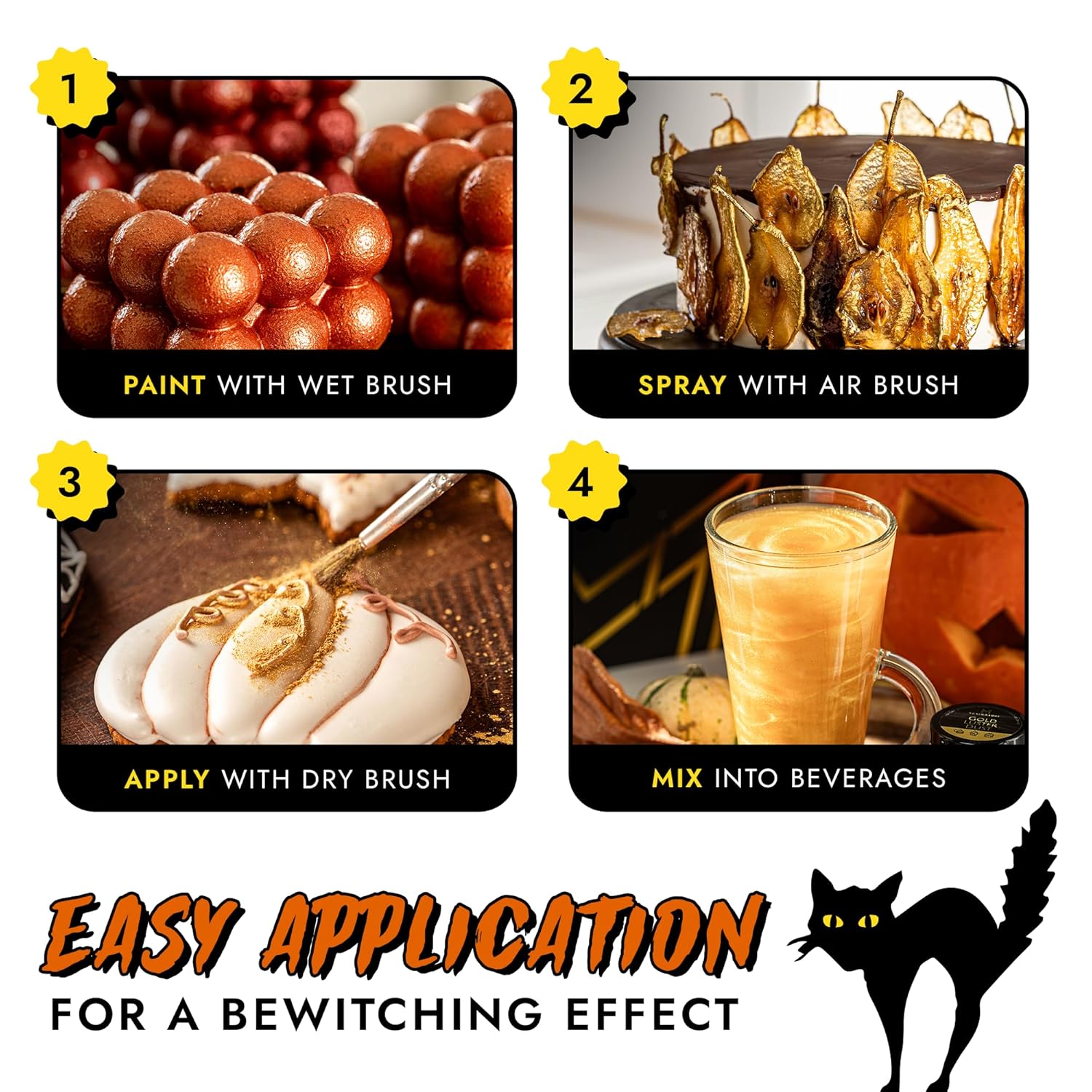 - VERSATILE EDIBLE LUSTER DUST : Elevate your halloween desserts and drinks with our sparkling edible luster dust edible glitter. Ideal for cocktails, cakes, cupcakes, and more. Perfect for adding a touch of magic to any special occasion or everyday treat. Safe and fun for the whole family to enjoy.