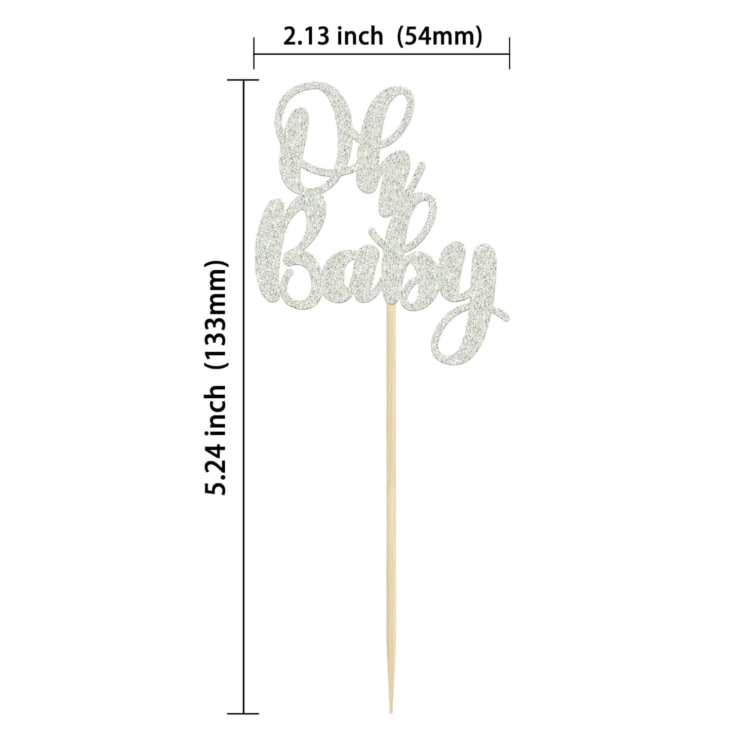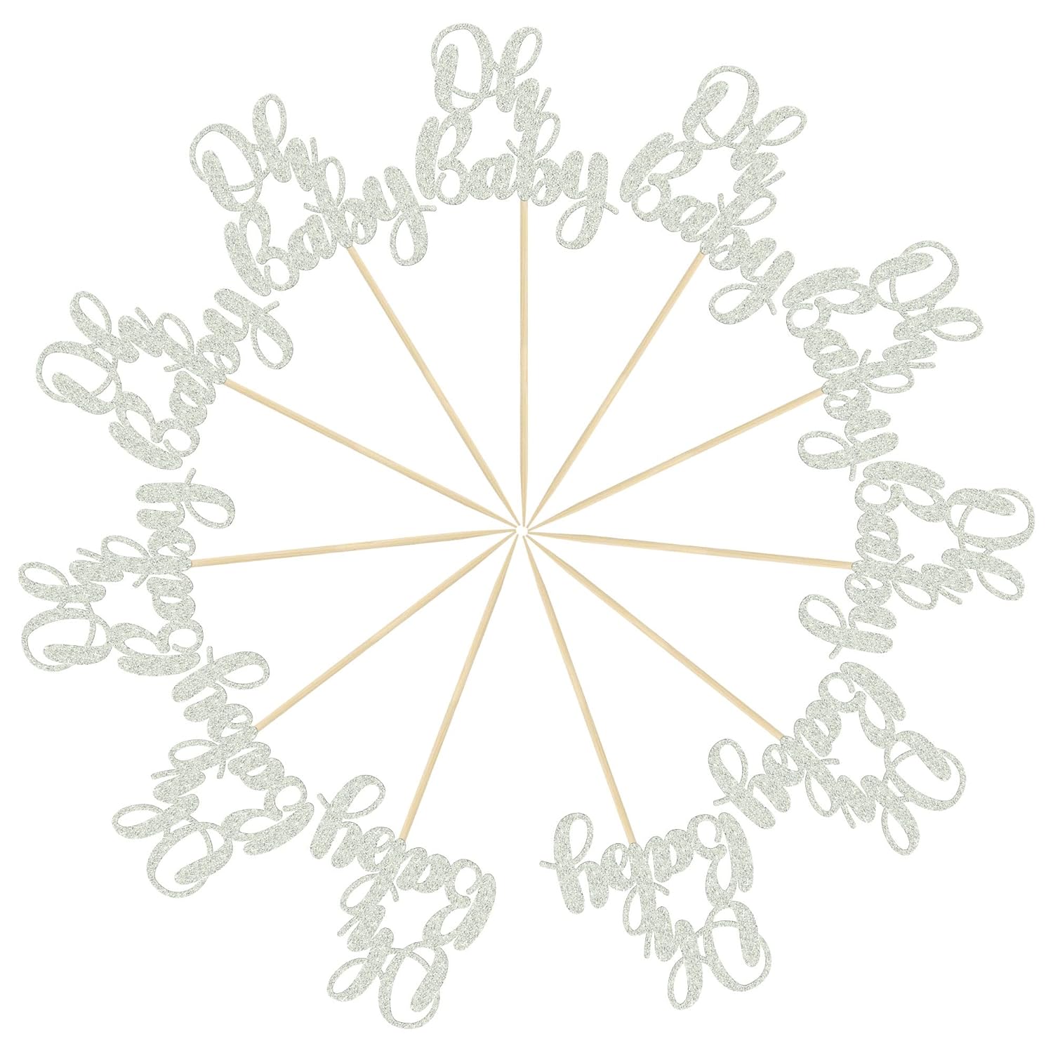 Gyufise 36 Pack Oh Baby Cupcake Toppers Silver Glitter Baby Shower Cupcake Picks Boys Girls Birthday Party Cake Decorations