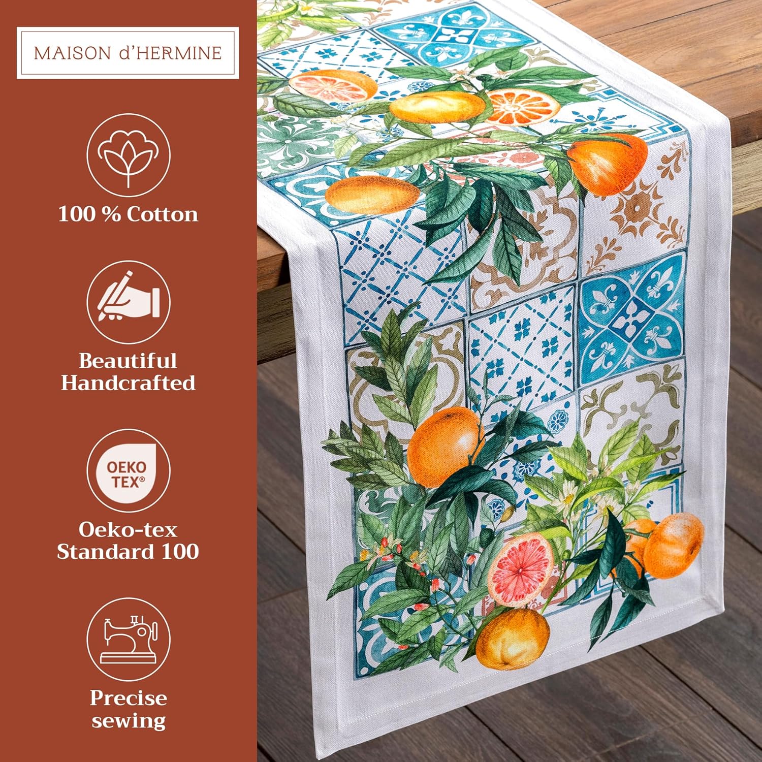 Maison d' Hermine Table Runner 100% Cotton Single Layer Table Runners 108 inches Long Decorative for Home Kitchen Dining Party Baby Shower Wedding Bridal Shower Spring Summer (Agrume, 14.50" x 108")