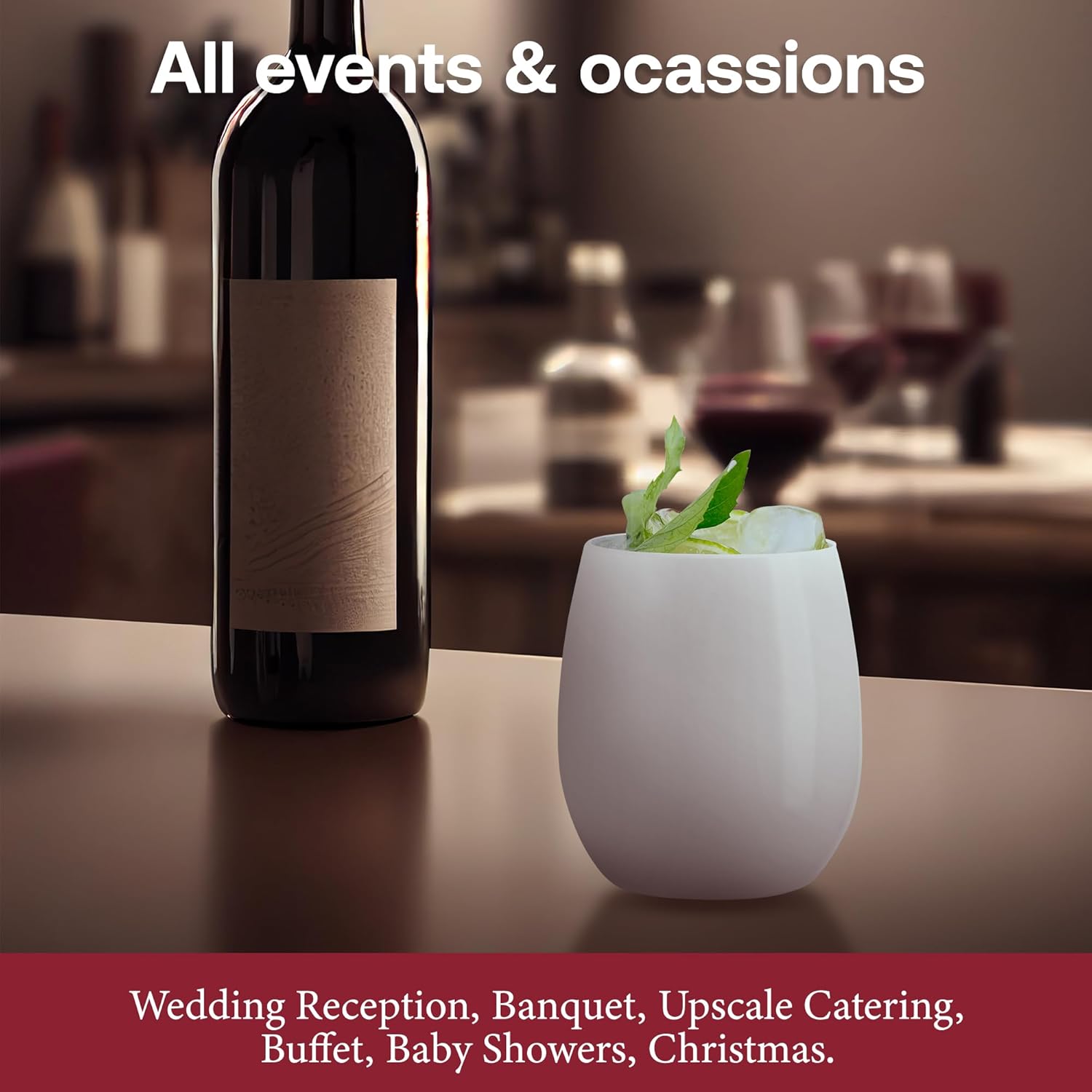 - STYLISH WHITE STEMLESS DESIGN β These 12 oz stemless wine glasses in chic white add sophistication to weddings, parties, and celebrations, creating a classy look for any occasion.