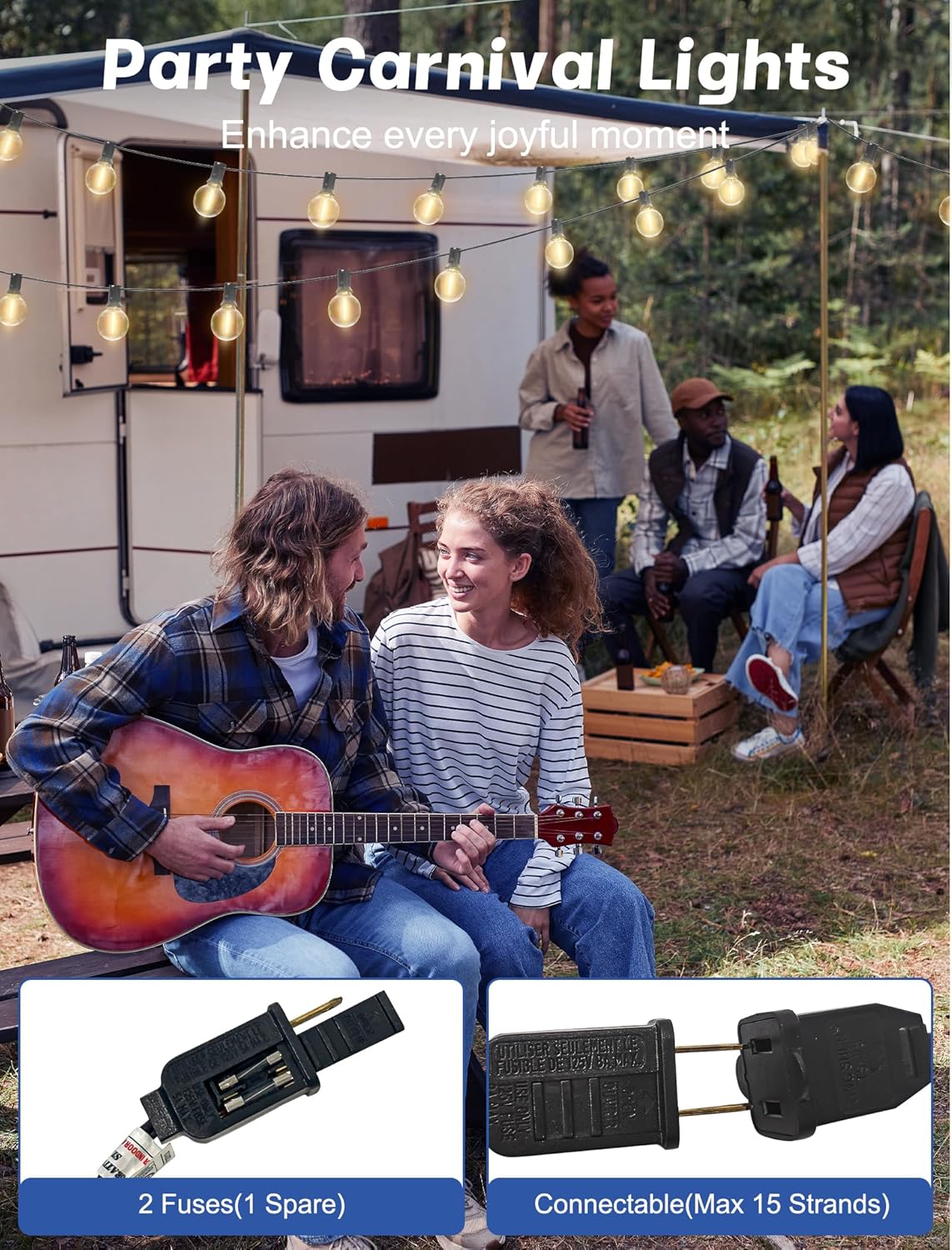 - End to End Design: Globe led string lights are 12" lead with male plug, 24" spacing between bulbs, 12" tail with female connector, total length 100 feet. G40 led patio string light is end to end connectable, it can be connected up to 14 strands to light up larger space
