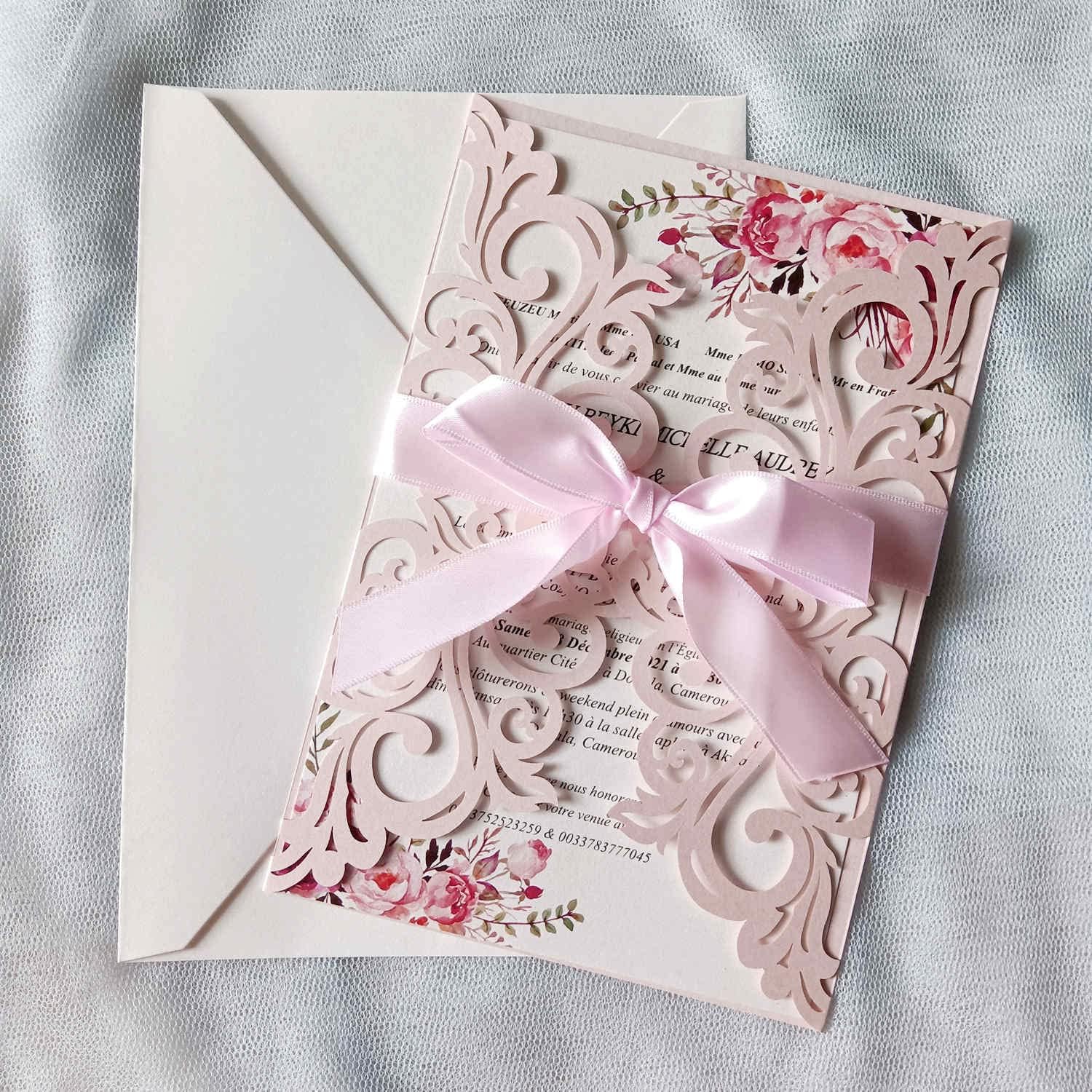 - Package including: 25 * Laser Cut Invitations Pockets + 25 * Cream Envelopes+25 * Blank Inner Sheets +25 * Ribbons
