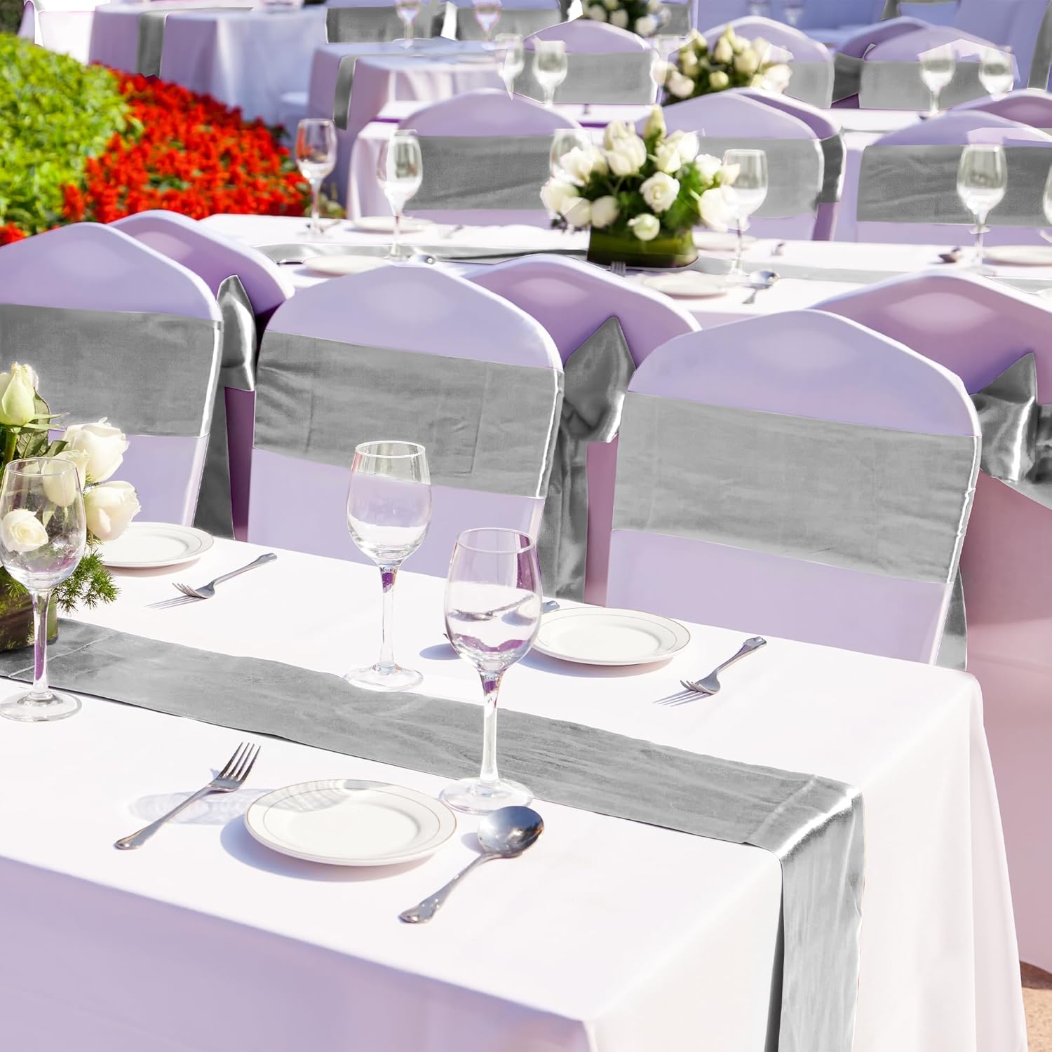 - Product size: each table runner is approximately 12 x 108 inches / 30 x 275 cm, which is large enough to cover rectangles and round tables, can also be spliced together for long tables; you can tie a bow to make the silver runner look more special, it can also be used as an ornament for chair covers