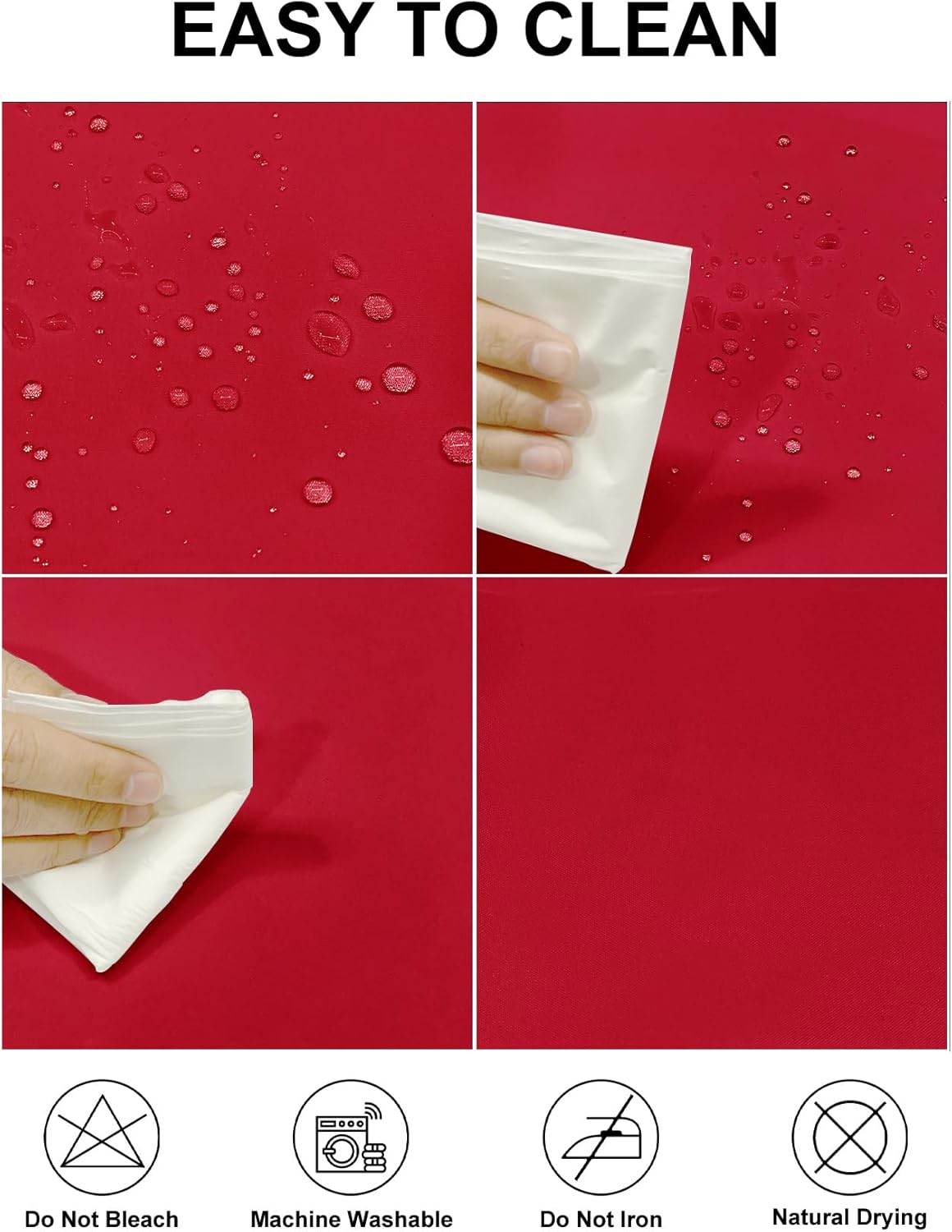 - Performance: Waterproof, wrinkle free, stain resistant. Easy to clean, not easy to deformation and shrink, machine and hand washable are available.