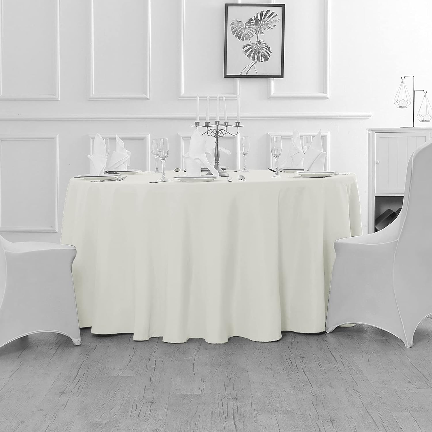 Fokitut 2 Pack Waterproof Round Tablecloth, 70 Inch, Stain Resistant and Wrinkle Polyester Table Cloth, Fabric Table Cover for Kitchen Dining, Wedding, Party, Holiday Dinner-Ivory