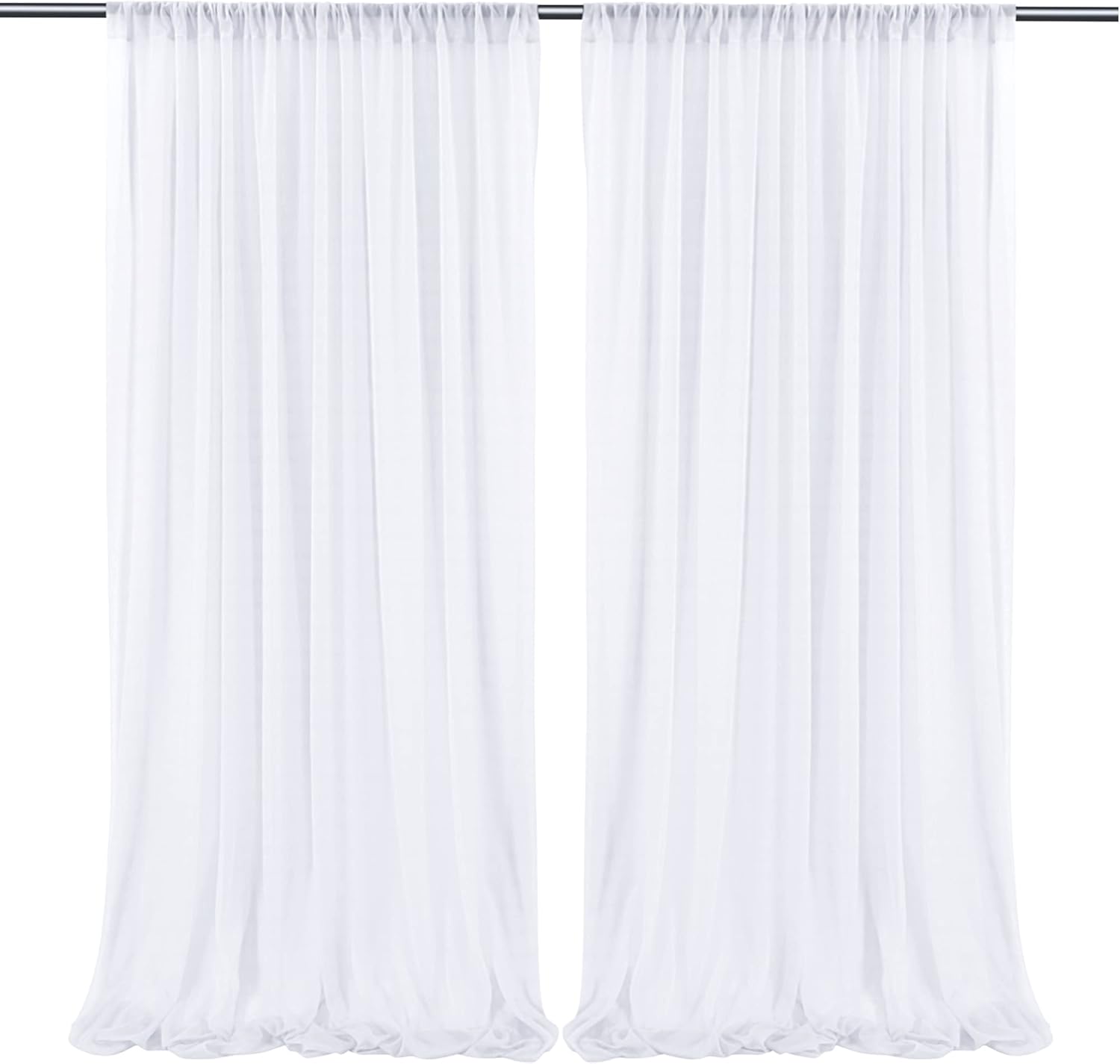 - Multipurpose and Versatile: These white sheer chiffon backdrop curtains are applicable for any indoor and outdoor occasion either for decorative or functional uses: weddings arch, receptions, parties, bridal and baby showers, birthdays, candy buffets, dessert tables background, trade shows, wedding stages photography, photo booths, ceremony and more