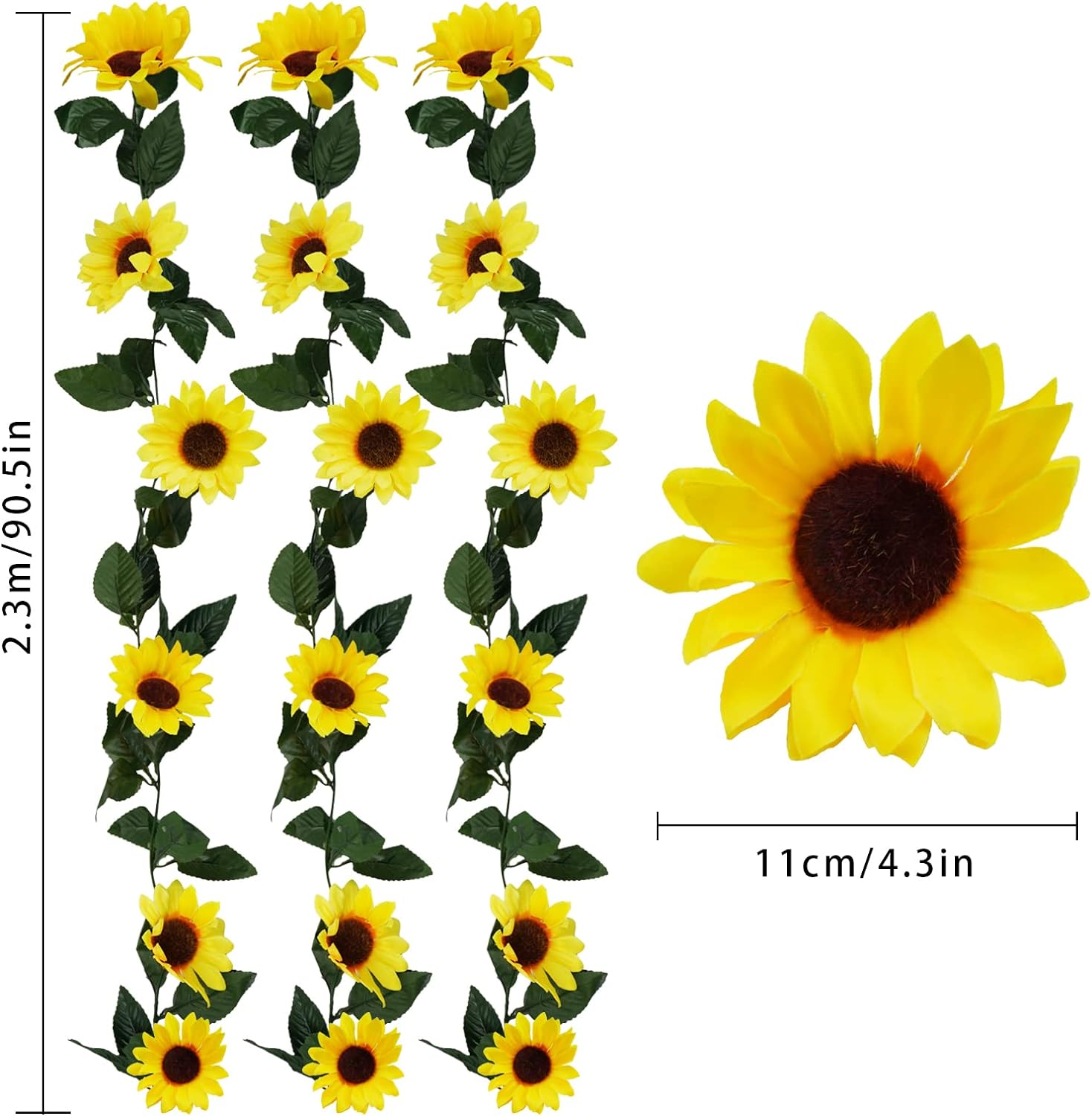 - Material: Silk, Plastic, High Quality, Each Sunflower garland 2.3m/7.5 FT Long, Flowers' heads 10cm/3.93 inches in diameter, Each garland holds about 69 leaves