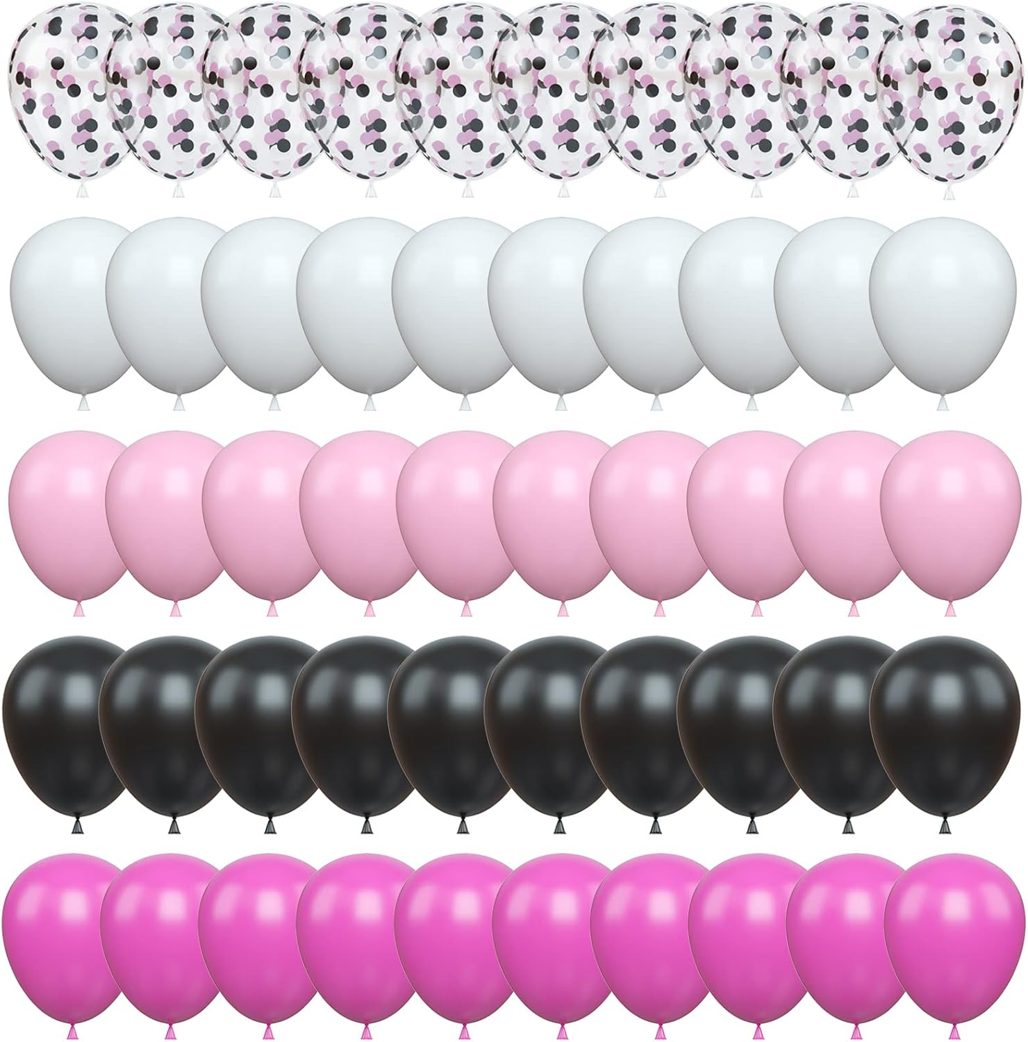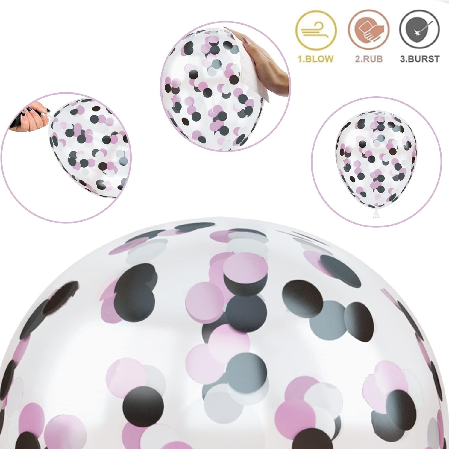 Balloons Black and Pink, Pack of 60 Hot Pink Black White Latex Balloon and Confetti Balloons, Rose Red Pink Party Balloons Decoration for Girls Mouse Theme Birthday Party Baby Shower Bridal Shower