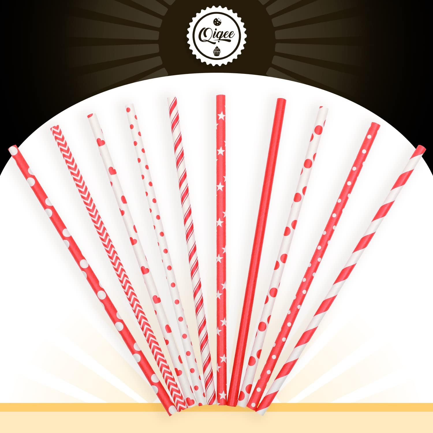 Red Paper Straws for Drinking Red Disposable Straws 150pcs Disposable Straws Bulk(10 Pattern) qiqee