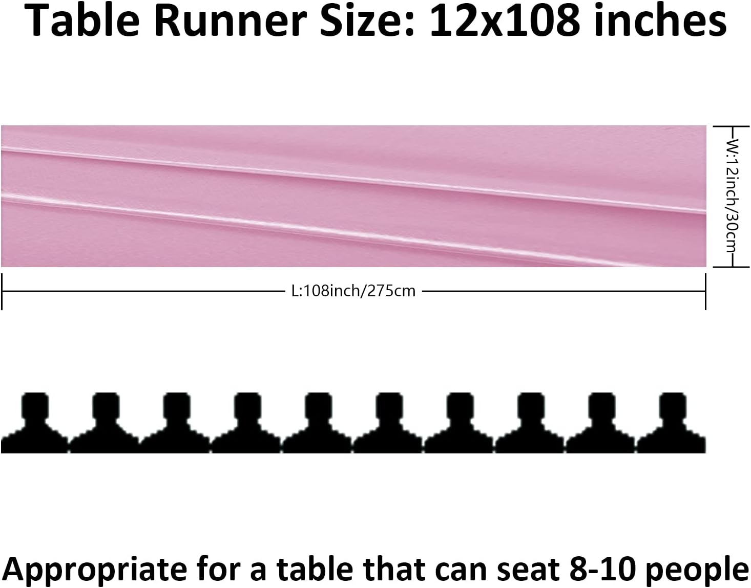 - Size:Satin table runner (12x108 inches),suitable for 8-10 seats either round or rectangle table,it is a perfect length for your event's table decorations.
