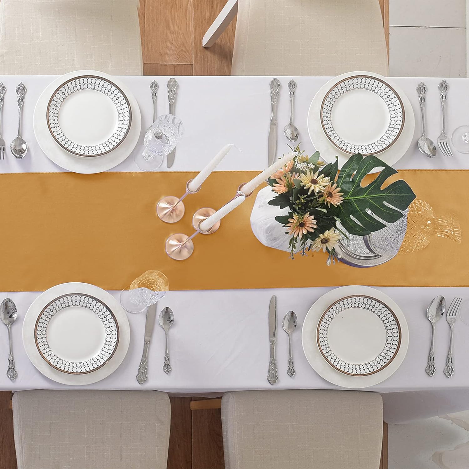 - Size:Satin table runner (12x108 inches),suitable for 8-10 seats either round or rectangle table,it is a perfect length for your event's table decorations.