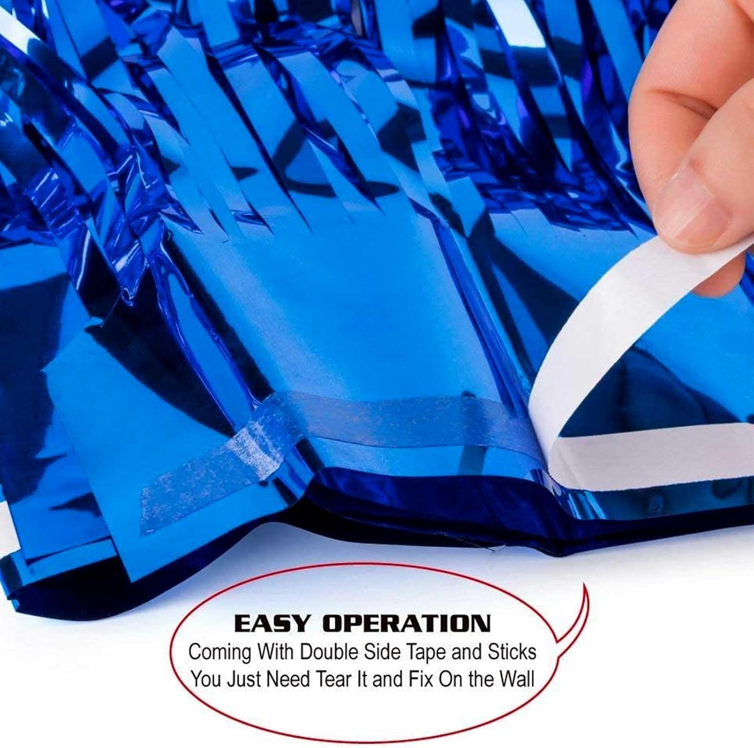 4 Pack Blue Foil Fringe Curtain Backdrop, 3.28Ftx8.2Ft Metallic Tinsel Streamers for Sea Party, Photo Booth Props, Birthday, 2022 Summer Ocean Theme Party Decoration Supplies