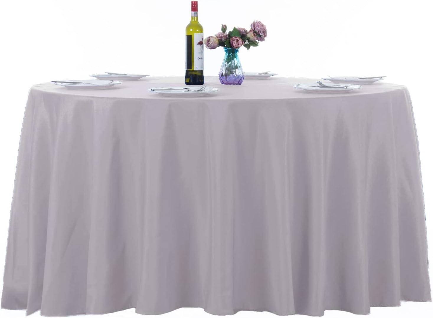 Ascoza 2pack 108 Inch Silver Round Tablecloth in Washable Polyester Fabric for Wedding/Banquet/Restaurant/Parties
