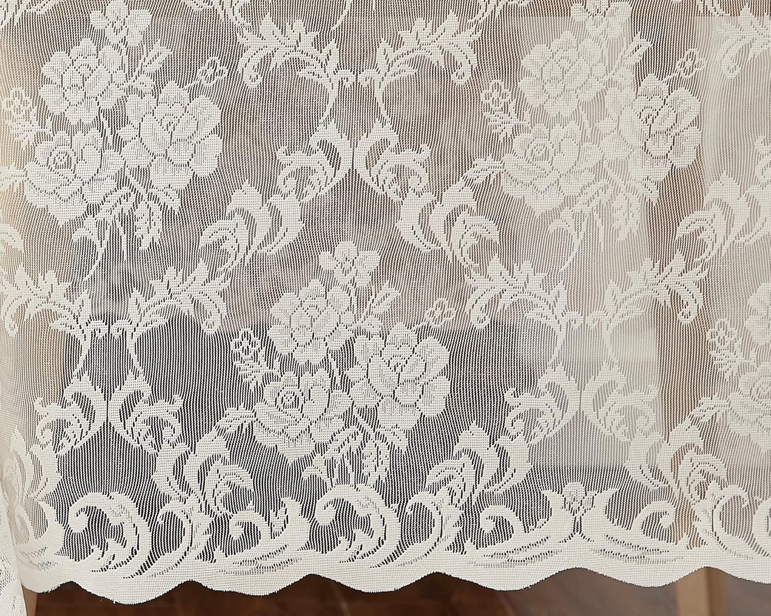 LinenZone Ivory Round Tablecloth for Rustic Vintage Decor. Sheer Lace Tablecloth Works Great As Wedding Table Cloth or Christmas Table Cover. (Mia 90 Round, Ivory)
