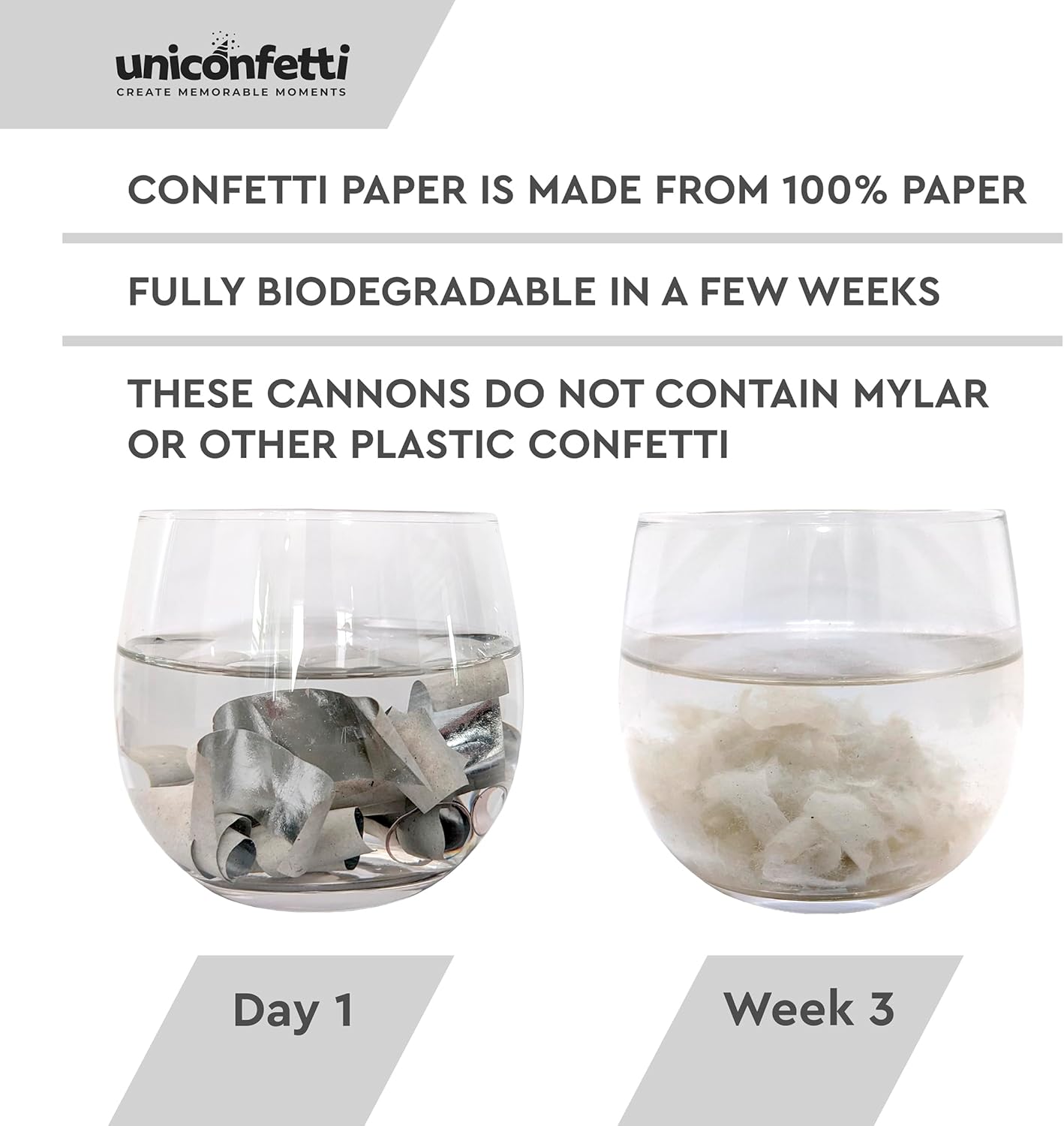 - š 100% BIODEGRADABLE [NOT PLASTIC] - SILVER Confetti is made of lightweight fire resistant tissue papers, 100% biodegradable. Our SILVER Confetti Paper is NOT PLASTIC or PVC. 100% safe for your party and good for the environment.
