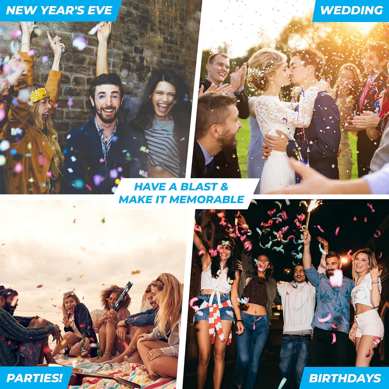 - š SUPER LOUD & FUN for any party or occasion - 6 JUMBO-SIZED poppers shooting Eatable RICE PAPER confetti to 25 feet, leaving them to dance and twirl in the air. Poppers will shoot with a loud [POP] that will guarantee to get everyone's attention.