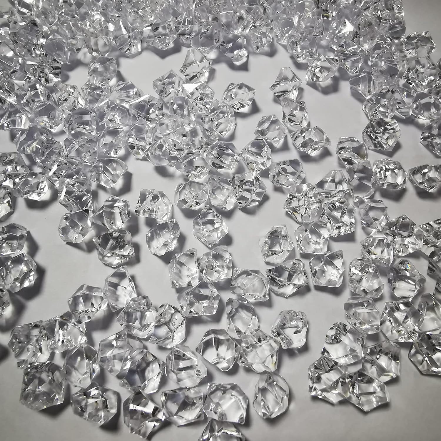 - Fine workmanship: Every piece of our Acrylic crystal gems are well polished and have no rough edges. These ice cubes are beautiful in shape and color. They are very bright under the light or sunshine, which can make your decoration distinctive and add brilliance to your life.