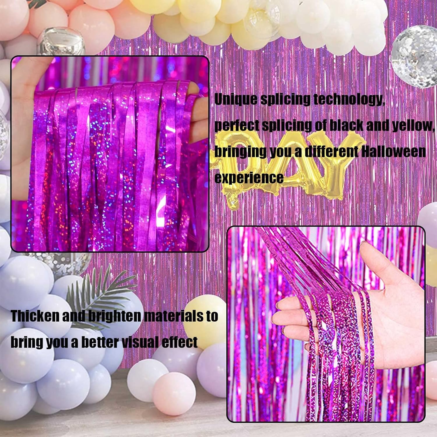 - The foil curtains good for party backdrop curtain, place on a wall and serves as a background for photos of any celebrations like: birthday party, theme party, Halloween, Christmas, New Year Eve, bachelorette party, wedding, bridal shower, baby showers, graduations and more.