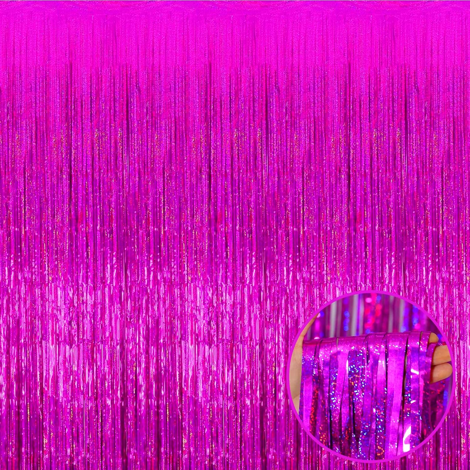 4 Pack Fuchsia Tinsel Foil Fringe Curtain Backdrop, 3.28Ft x 8.2Ft Metallic Streamers for Photo Booth Props Wedding Bridal Shower Bachelorette Birthday Halloween Christmas Party Decoration
