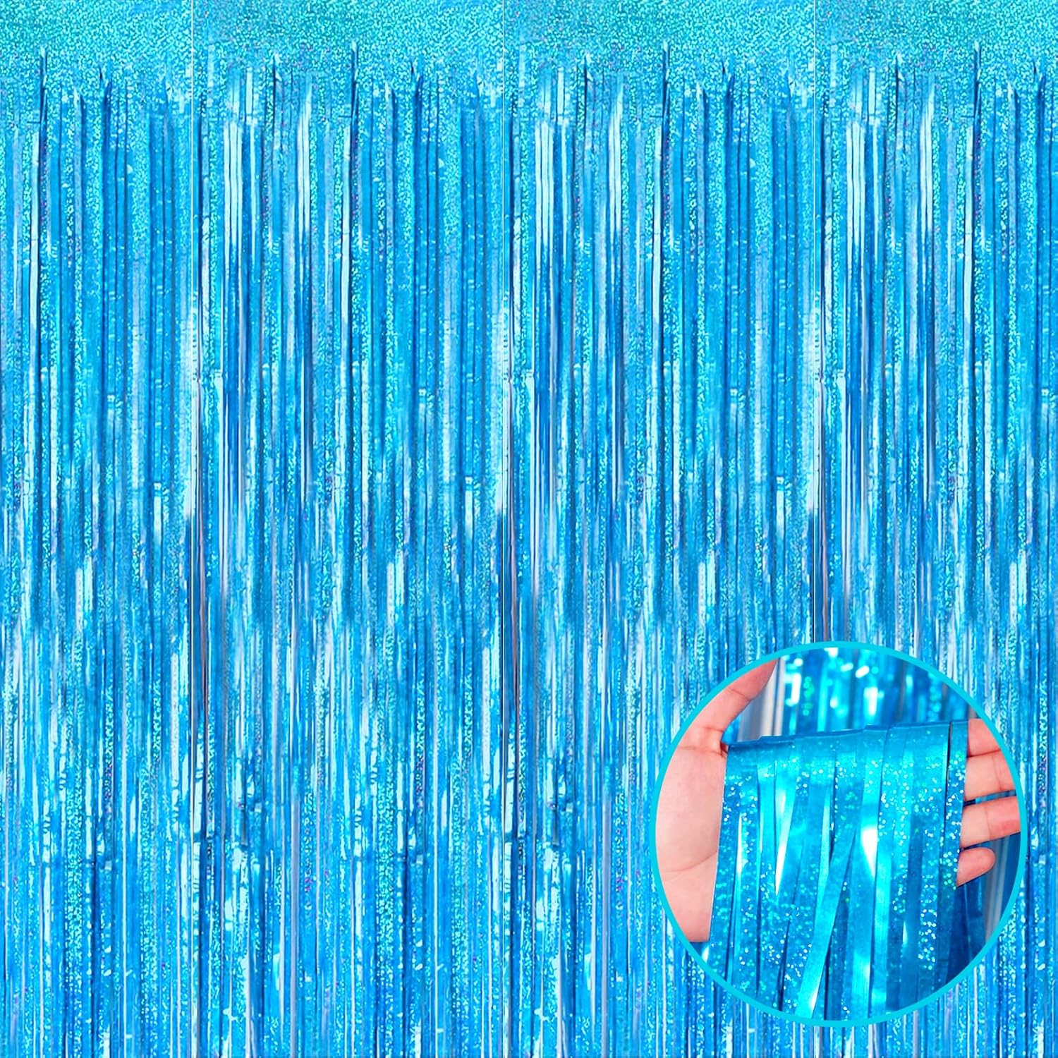 4 Pack Light Blue Tinsel Foil Fringe Curtain Backdrop, 3.28Ft x 8.2Ft Metallic Streamers for Photo Booth Props Wedding Bridal Shower Bachelorette Birthday Halloween Christmas Party Decoration