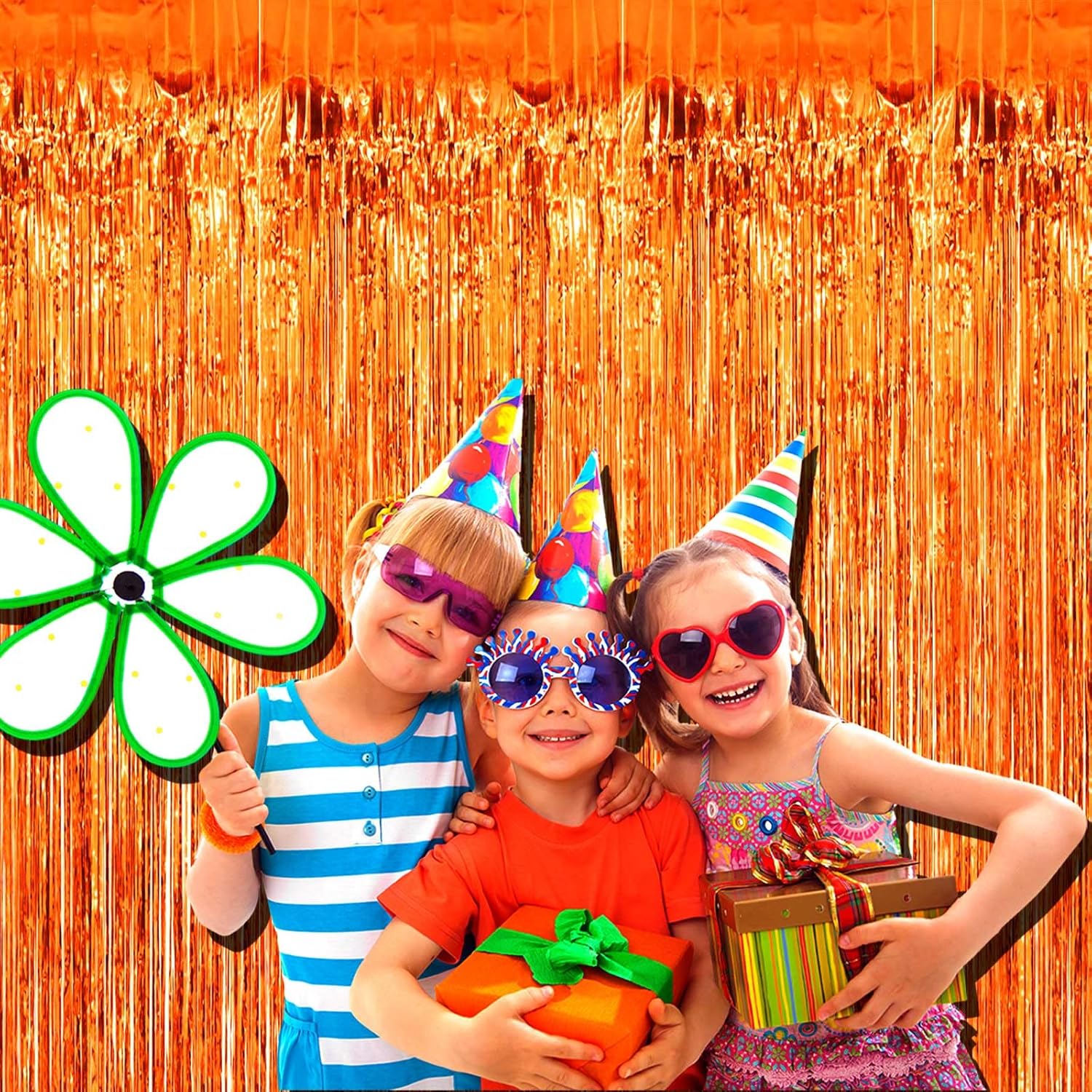 4 Pack Orange Foil Fringe Curtain Backdrop, 3.28Ft x 9.84Ft Metallic Tinsel Foil Fringe Streamers Curtains for Party, Photo Booth Props, Birthday, 2022 Graduation Decoration Supplies, orange 3m