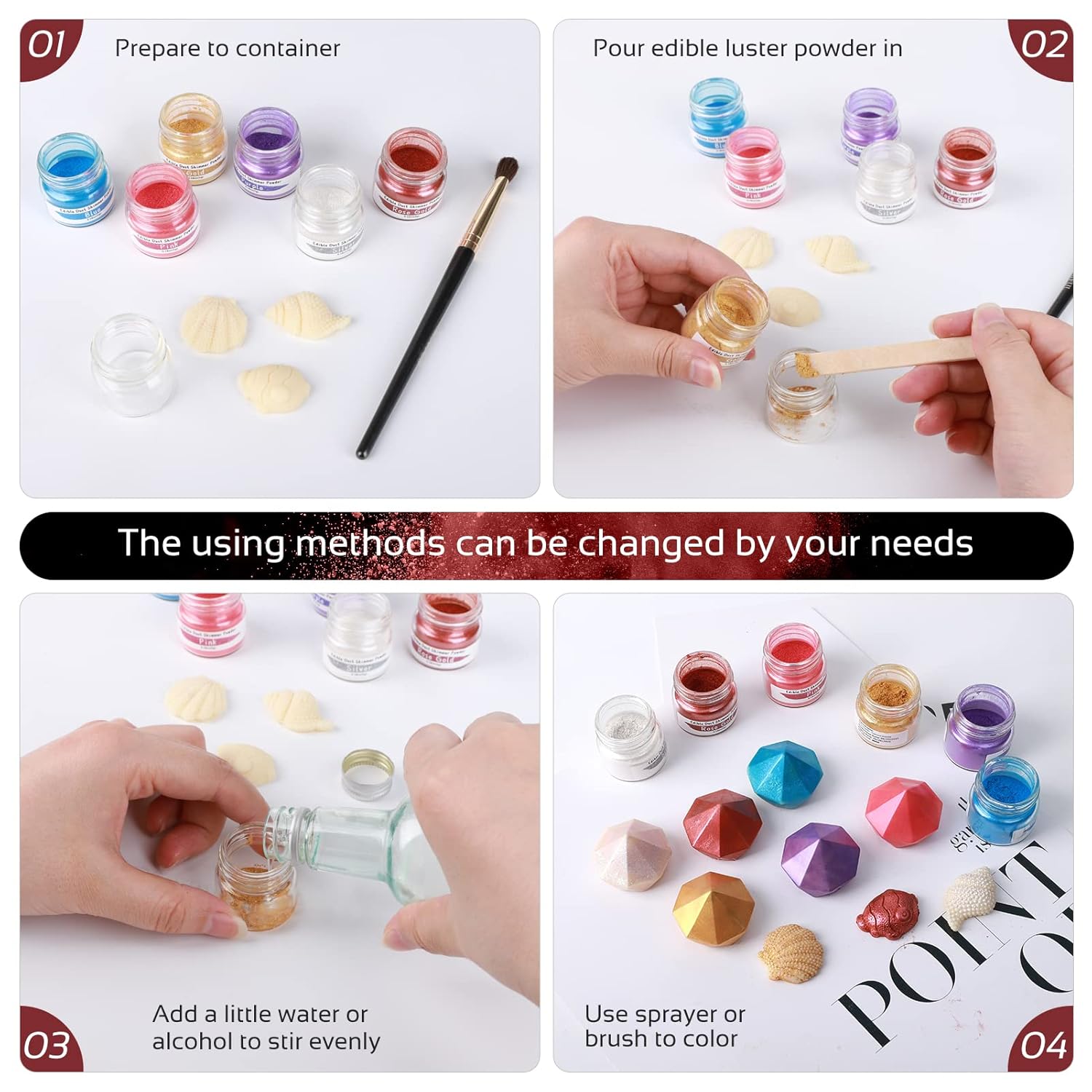 - 【High-quality Luster Edible Dust Powder】Made of food grade mica powder imported from Germany and food coloring, no sugar or spices are added. Dairy-free, gluten-free, vegan, and MSDS-certified ingredients!